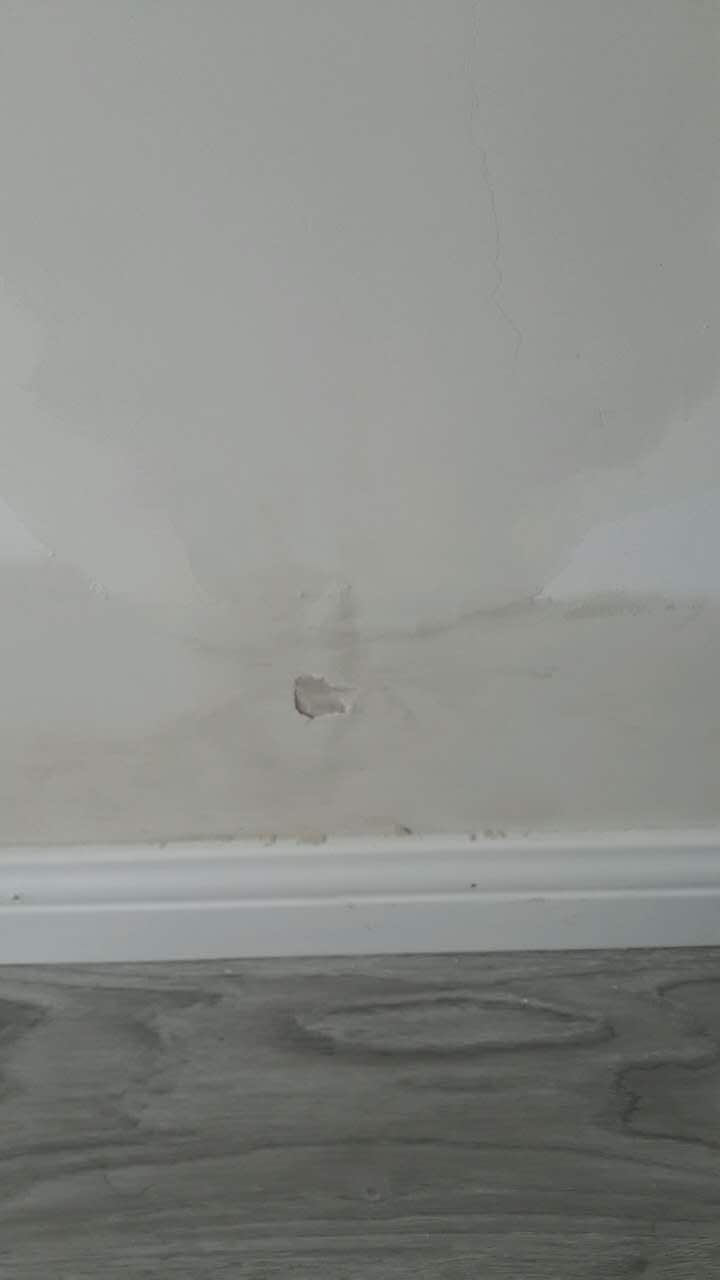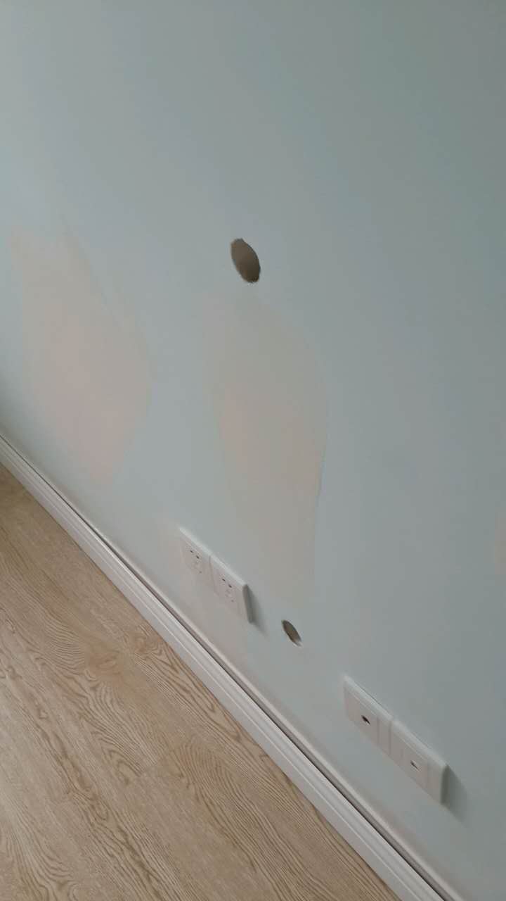 刷墻后第一周,下雨,臥式墻面崩潰。臥室廢棄的老空調洞竟然不補直接刷漆?。。?!這樣也不叫偷工?
