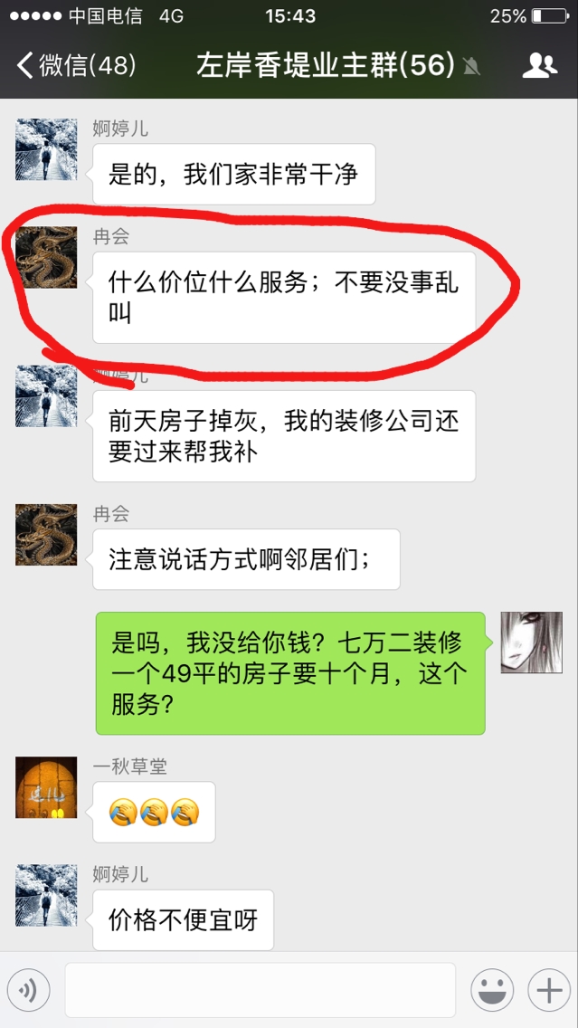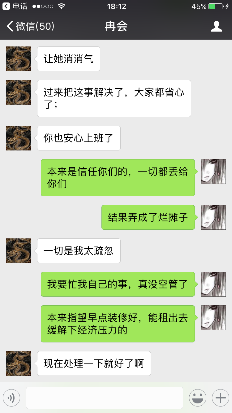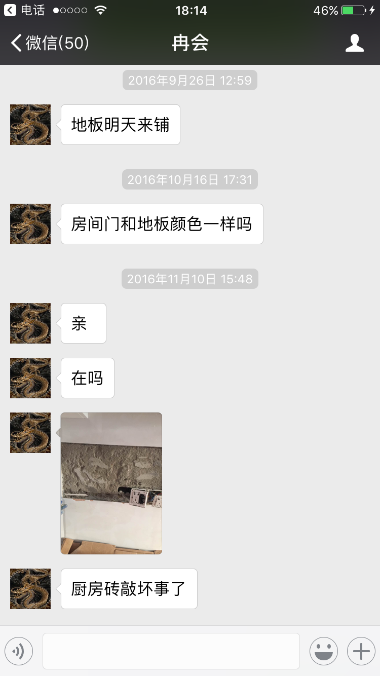 我母親于2015年12月購買此項(xiàng)目所在房,后經(jīng)該房產(chǎn)公司銷售經(jīng)理王?。娫挘?8695076044)介紹,與2016年與該公司簽訂裝修合同,合同大致內(nèi)容是除家電、床、部分家具已經(jīng)燈以外全包,裝修總金額是62000元。裝修期限是2016年7月8日至2016年9月8日。并且我方已與8月之前繳納清前期的5萬元費(fèi)用,并將已購買好的空調(diào)油煙機(jī)以及熱水器尺寸報(bào)給該公司老板。但是施工方在做完前期的水電已經(jīng)剛架構(gòu)的隔層以后就停工,我于9月8號至11月底兩個(gè)月內(nèi)多次去驗(yàn)收房屋,工程均未有任何進(jìn)展(地磚地板未鋪,衛(wèi)生間未動(dòng)工),后在我屢次催促之下。與年底之前勉強(qiáng)將這些工程完工。但是工程質(zhì)量十分粗糙,用料簡陋,參照照片,家電安裝處未按照我所給的尺寸預(yù)留,并造成家電無法安裝,之后為了敷衍,采取了一些簡易的方法補(bǔ)救。閣樓小房間空調(diào)下水管未預(yù)留,并對我稱已經(jīng)弄成這樣了不好再返工,空調(diào)下水的話弄個(gè)水桶接一下,滿了自己提出去倒了這種意見。再之后又沒了動(dòng)靜,我屢次聯(lián)系對方,電話直接掛斷,偶爾在公司找到人,立刻稱自己在太倉等地還有工程要立刻過去或者上個(gè)廁所等一些劣質(zhì)的理由離開,然后再不出現(xiàn)。在之后至今又是長期聯(lián)系不到人,打電話根本不接聽,至今廚房的移門扔未安裝,該老板稱忘記了,現(xiàn)在我們通過一些特殊手段,堵在她家門口總算找到她,并向其提出讓其履行合同條款內(nèi)的違約賠償,該老板不與理會(huì),甚至采取無賴手段找一些不相關(guān)的人哄我們走。本人家庭因?yàn)樯钶^為困難,老父親腦子開過刀之后就長期生活不能自理需要母親24小時(shí)陪護(hù),自己和愛人又要上班又要帶孩子,并且也不是特別懂得相關(guān)法律政策,無奈想貴機(jī)構(gòu)求助,希望能夠得到妥善的解決,再次表示衷心的感謝。