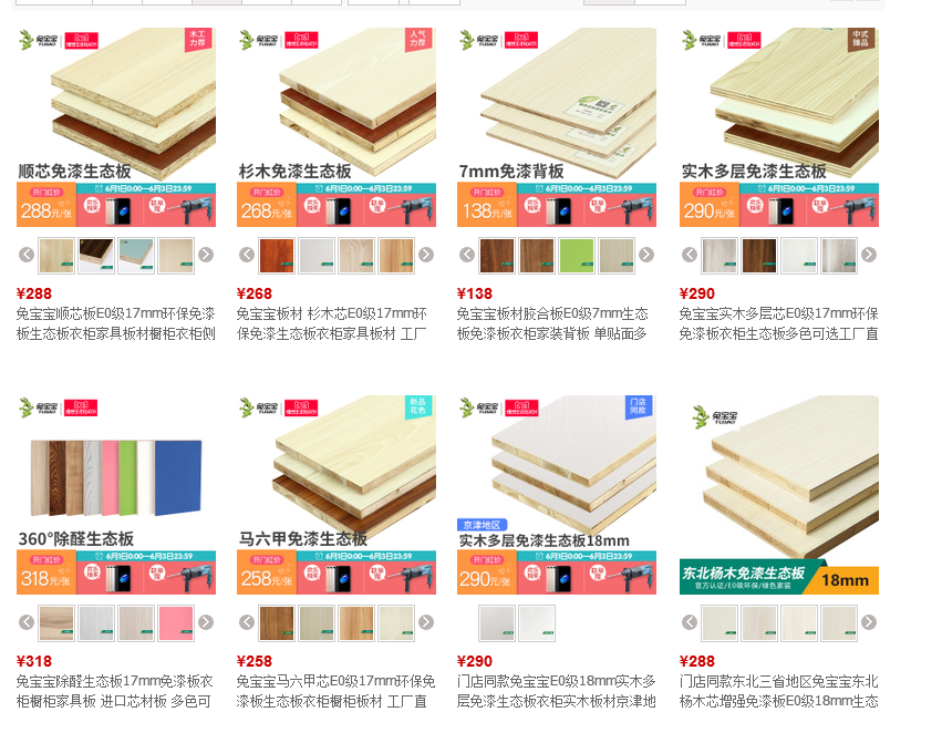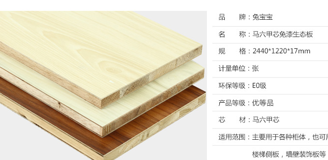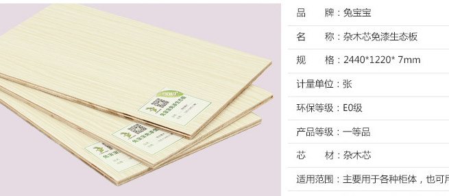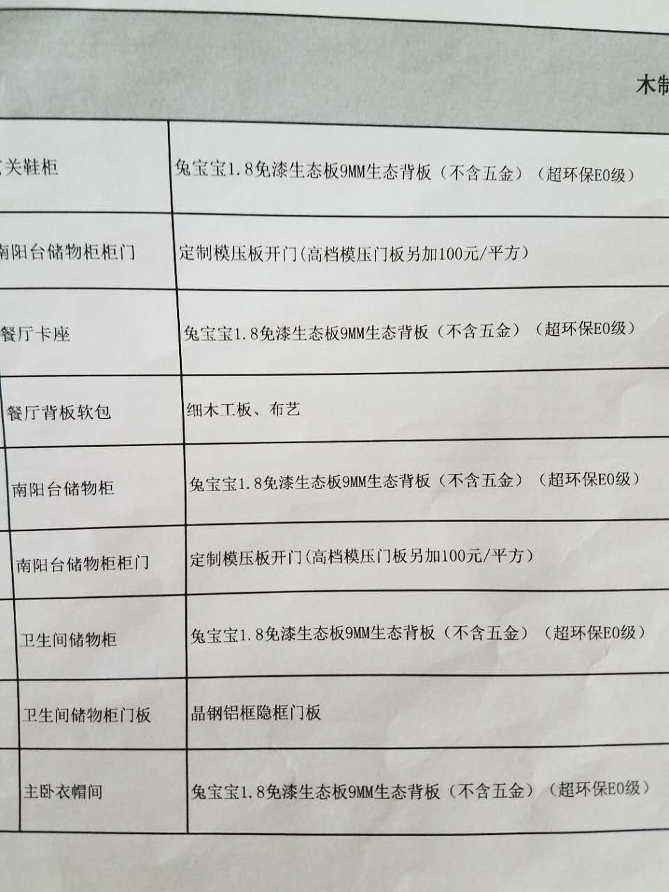 合同報價木工部分的板材是兔寶寶18MM免漆生態(tài)板和9MM背板,實(shí)際使用是17MM規(guī)格的馬六甲芯板和7MM背板。