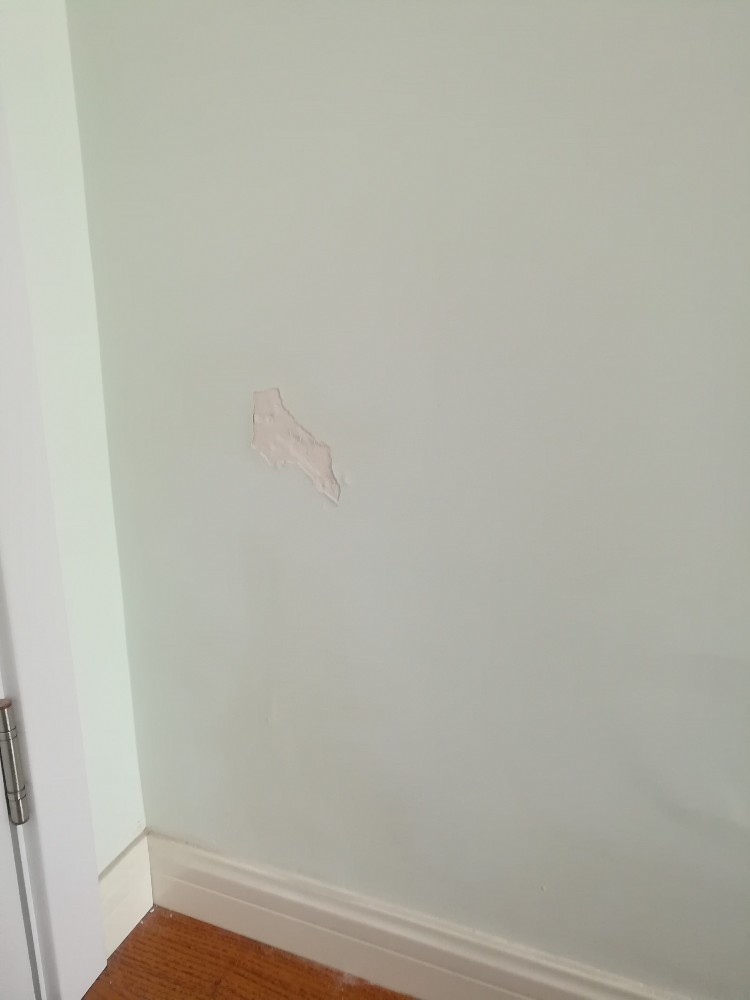 2016.3月初!發(fā)現(xiàn)北房間靠衛(wèi)生間一側(cè)!墻面部分鼓起~開裂!