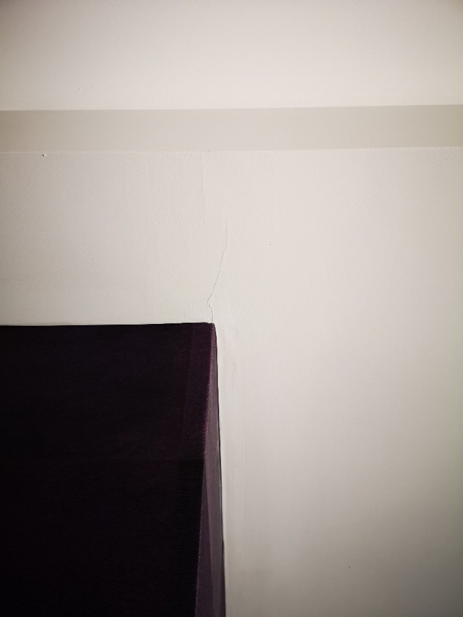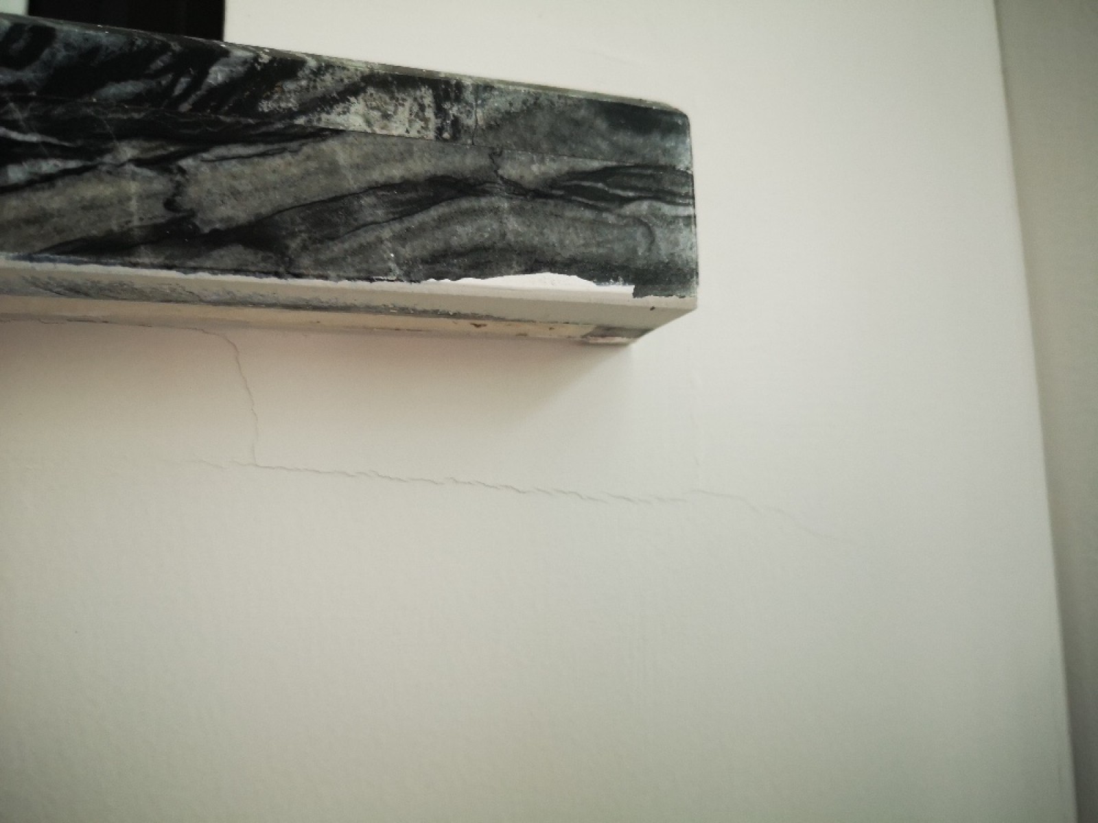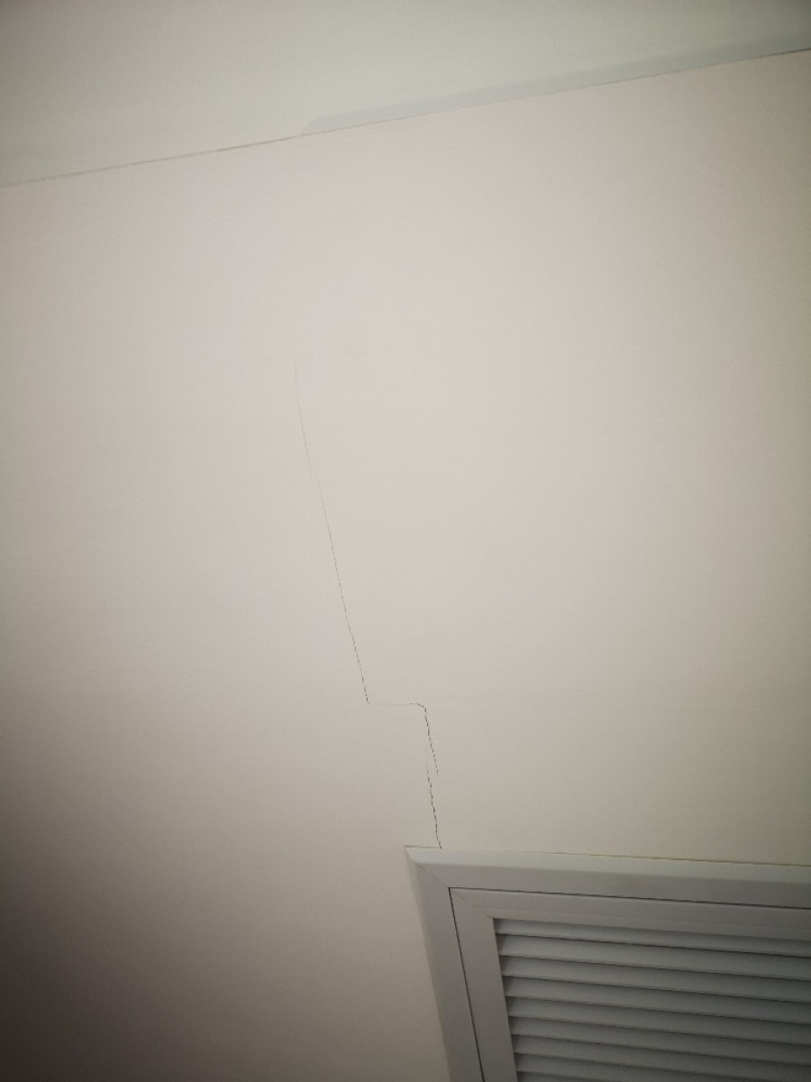 3、墻面多達(dá)24處粉刷完成后出現(xiàn)開裂現(xiàn)象,施工方填補(bǔ)后,仍然有開裂現(xiàn)象,并且墻面存在嚴(yán)重色差