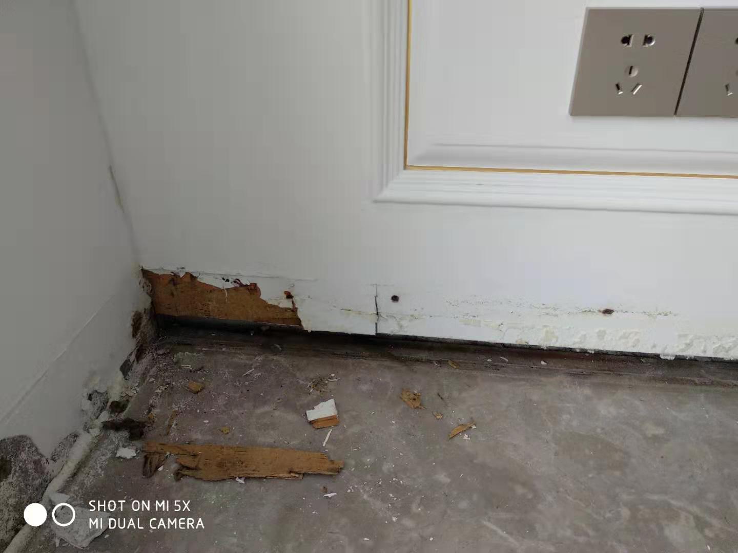東易日盛在裝修過(guò)程中由于施工方鋪陽(yáng)臺(tái)墻地磚更換地漏時(shí),把原毛坯房地漏濾網(wǎng)掉入陽(yáng)臺(tái)下水管,2019年6月30日下雨時(shí)下水管堵塞翻水,造成水從二樓陽(yáng)臺(tái)積水后一直大面積流淌到一樓,二樓周邊墻面木飾面與木制貼腳線底部嚴(yán)重泡水變形,實(shí)木地板全部報(bào)廢,一樓石膏板吊頂及木制貼腳線同時(shí)損壞,放在一樓地面的進(jìn)口掃地機(jī)、擦窗機(jī)泡水造成無(wú)法正常使用。
