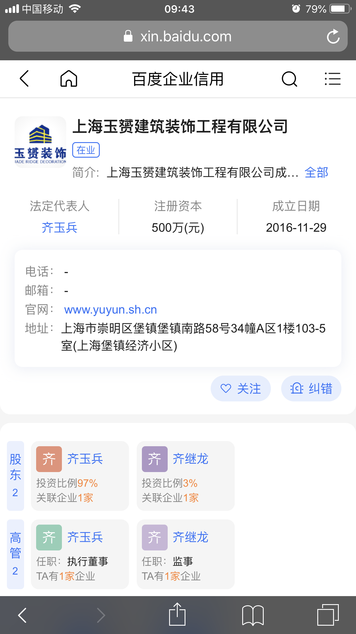 | 公司類型 | 有限責(zé)任公司(自然人投資或控股) | 行業(yè) | 建筑裝飾、裝修和其他建筑業(yè) |