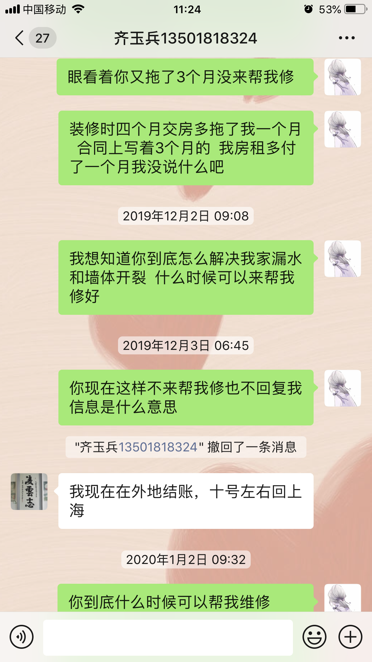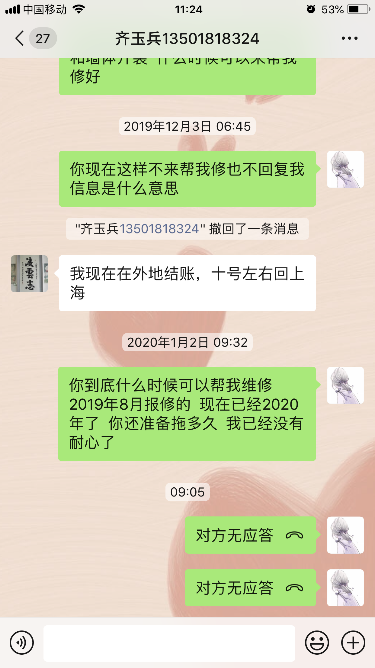 | 投訴類型 | 施工質(zhì)量 | 投訴人 | 蔣** | 被投訴單位 | 上海玉赟建筑裝飾工程有限公司 |