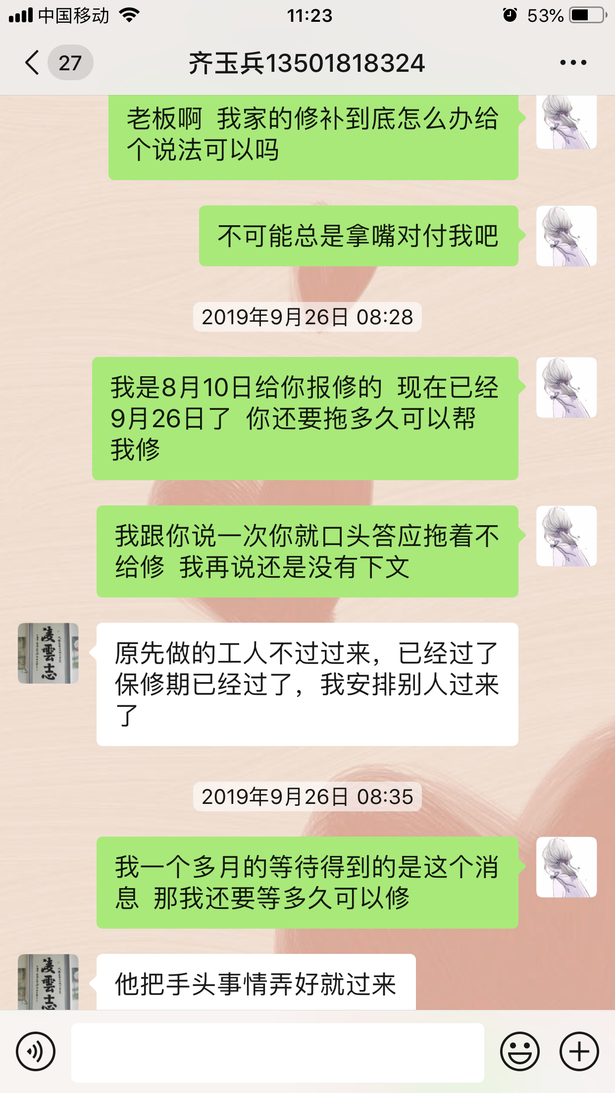 | 裝修面積 | 70m2 | 投訴人手機 | 1365189**** | 被投訴人手機 | 1350181**** |