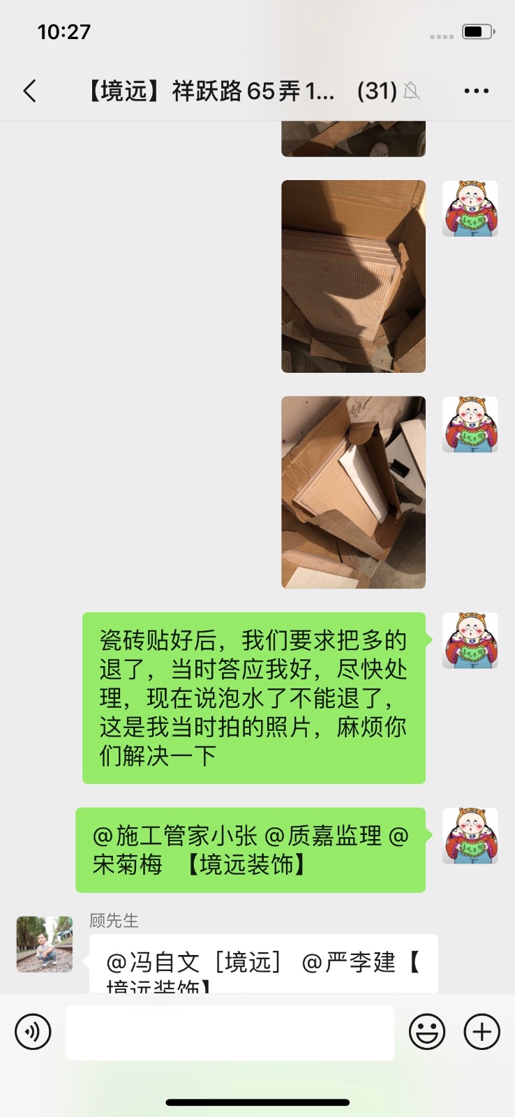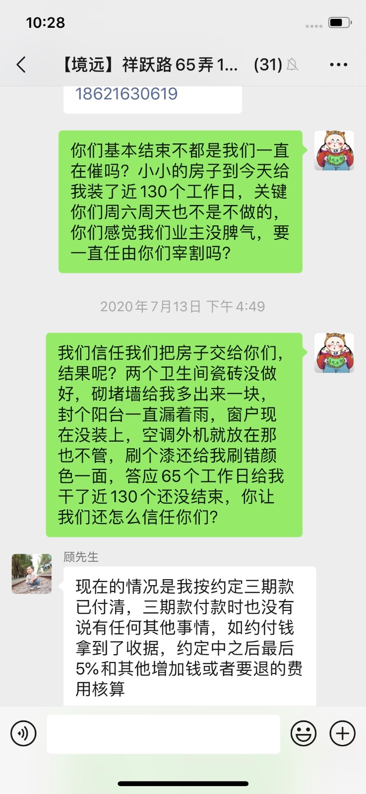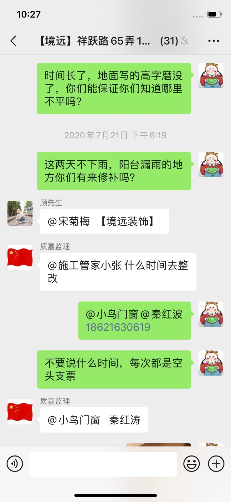 | 投訴類型 | 施工質(zhì)量 | 投訴人 | 孟** | 被投訴單位 | 上海境遠(yuǎn)裝飾設(shè)計(jì)工程有限公司 |