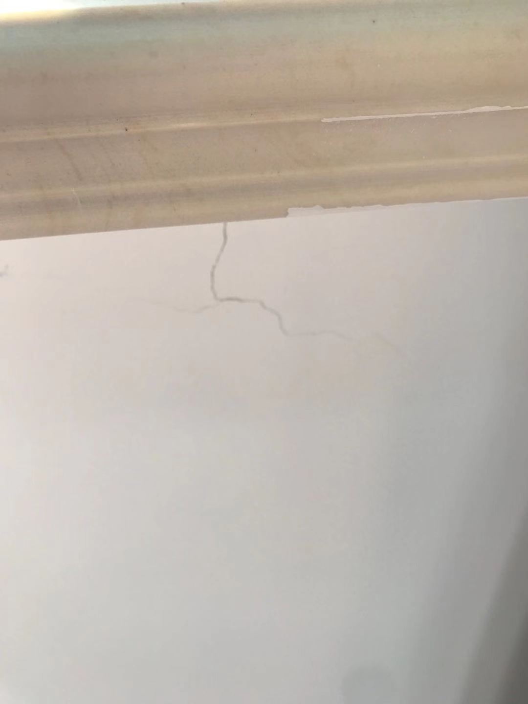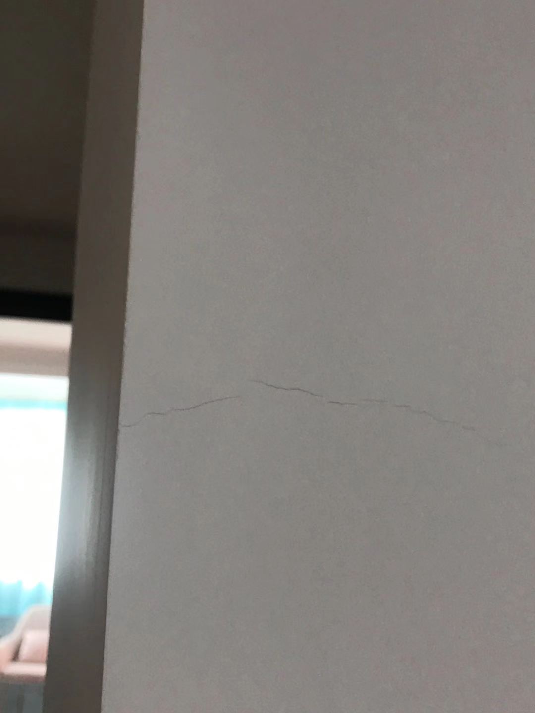 在2019年6月,第二次發(fā)現(xiàn)屋內(nèi)大面積出現(xiàn)墻面開裂,裂紋有細(xì)有粗,于是向裝修公司反映情況,申請(qǐng)維修。由于原施工隊(duì)長(zhǎng)姚龍已離職,公司拖拉直到9月才指派新的施工隊(duì)長(zhǎng)陳仁才與我對(duì)接;新隊(duì)長(zhǎng)查看后提出,彩色背景墻建議更換成墻布,其余各處白色墻面幫我修補(bǔ)。我接受了這個(gè)方案。10月份彩色背景墻更換墻布后,新隊(duì)長(zhǎng)以各種理由推脫,遲遲不來修補(bǔ)墻面。