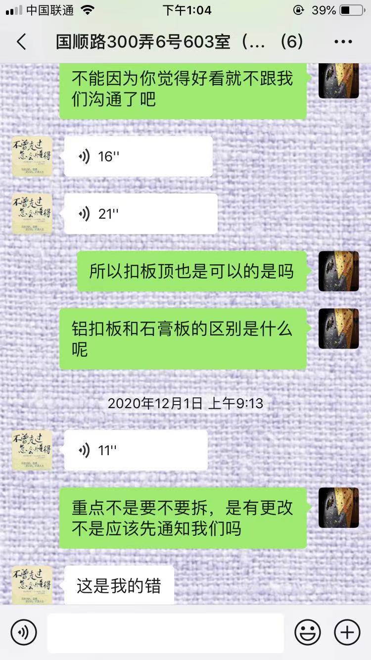 施工隊(duì)長(zhǎng)明知我們衛(wèi)生間干區(qū)已定鋁扣板集成吊頂,卻不通知我們,不簽項(xiàng)目變更單,擅自將其改為石膏板吊頂。在我們發(fā)現(xiàn)后,施工隊(duì)長(zhǎng)解釋稱因衛(wèi)生間干區(qū)頂上有梁,做不了集成吊頂。但我們咨詢了第三方監(jiān)理,得知集成吊頂在此情況下也完全可以做,且施工過(guò)程中即使有必須更改的情況也應(yīng)先征得我們的同意再做更改,故我們對(duì)施工隊(duì)長(zhǎng)擅自更改項(xiàng)目的行為表示非常不滿。