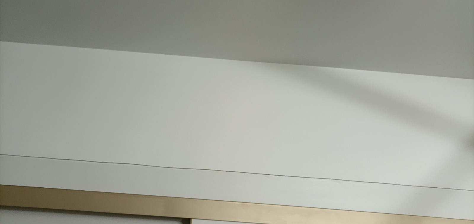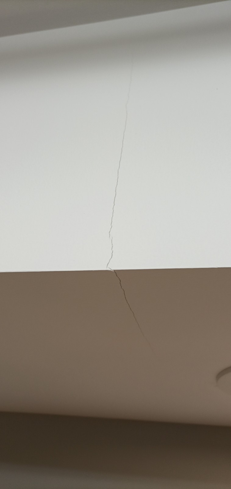 這次裝修吊頂沒打水平儀,所以吊頂和定制衣柜不能對(duì)接,他們補(bǔ)過后,現(xiàn)在全部開裂一條縫。