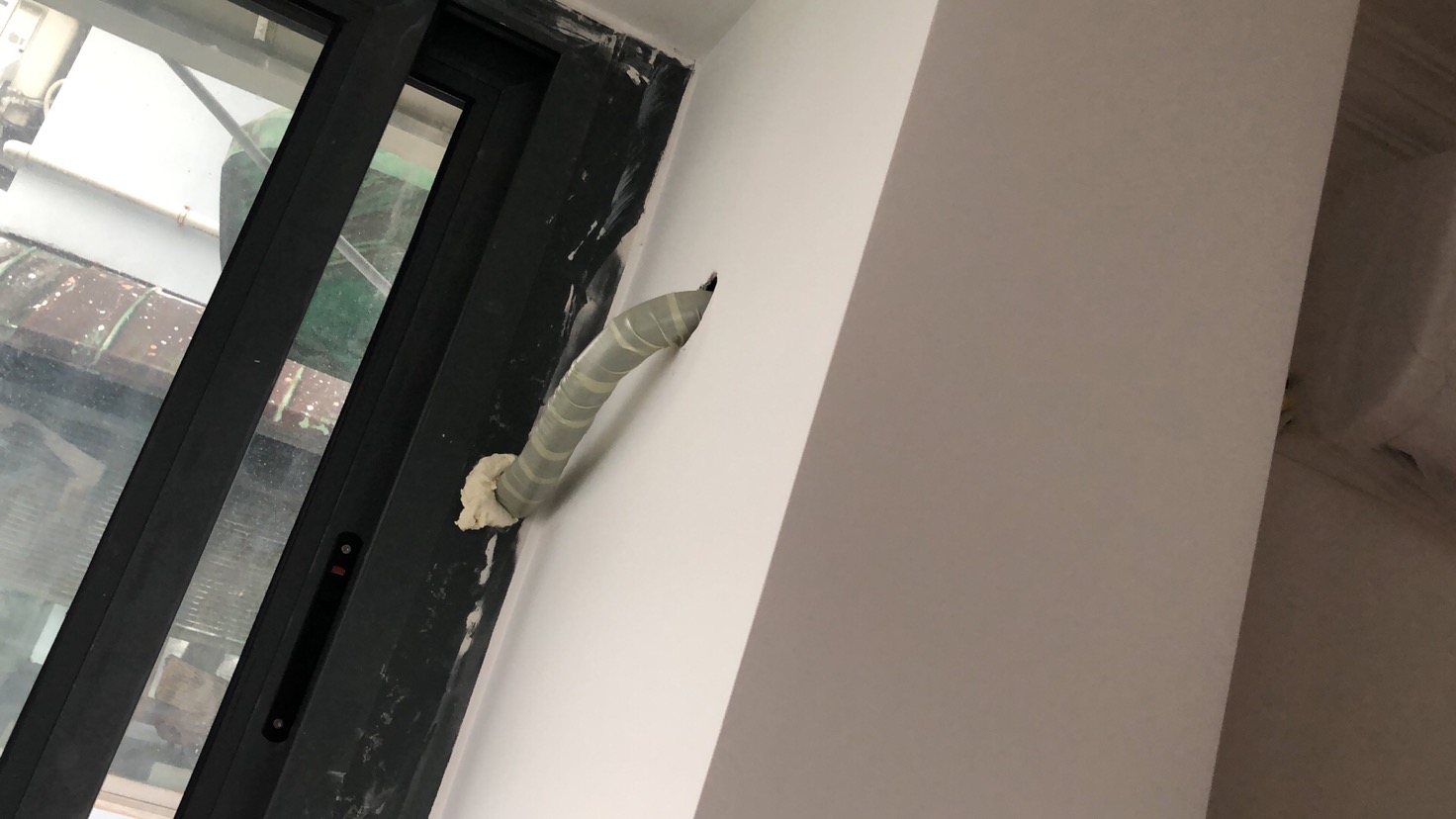 1、空調(diào)孔洞打斜孔,工人偷懶導致最終也沒得到解決,來裝空調(diào)的師傅告訴我才知道什么叫斜洞。