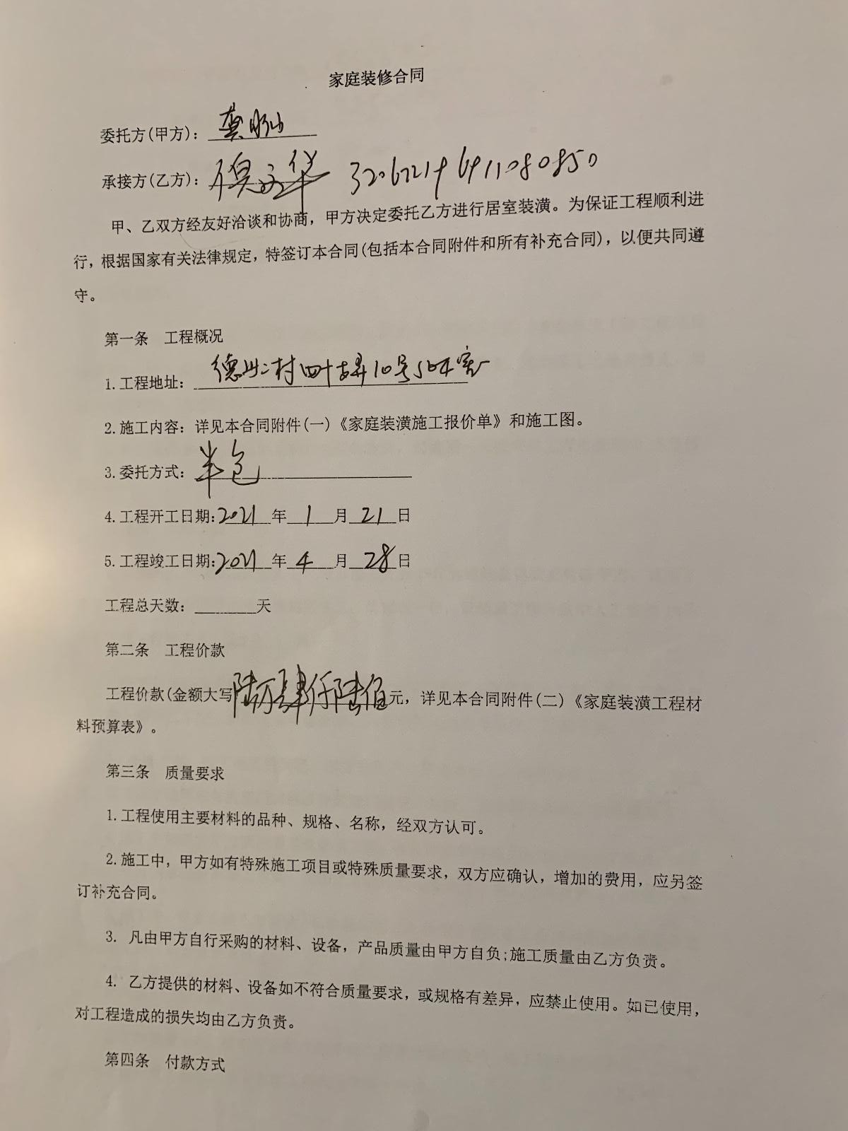 6.合同約定完工日期為4月28日(3個月施工周期),截至5月6日仍有大量裝修內(nèi)容未完成,且后續(xù)工人遲遲不入場