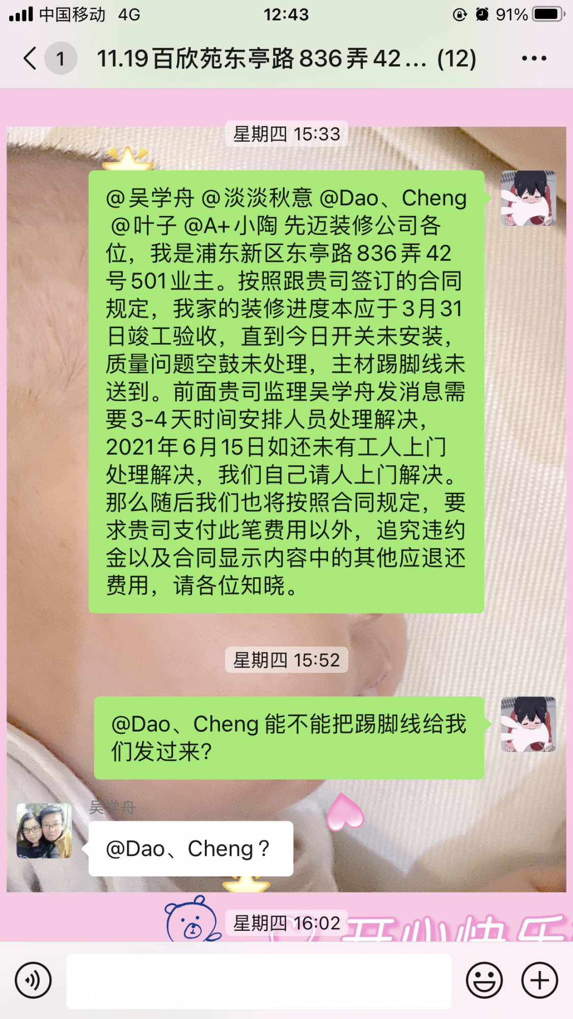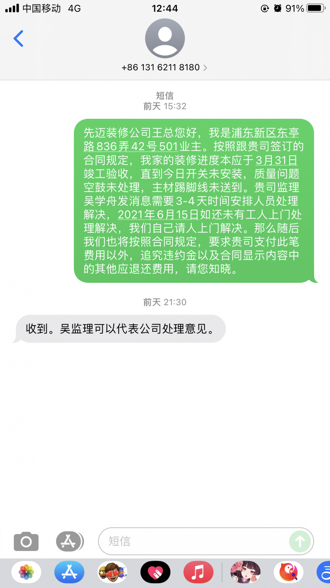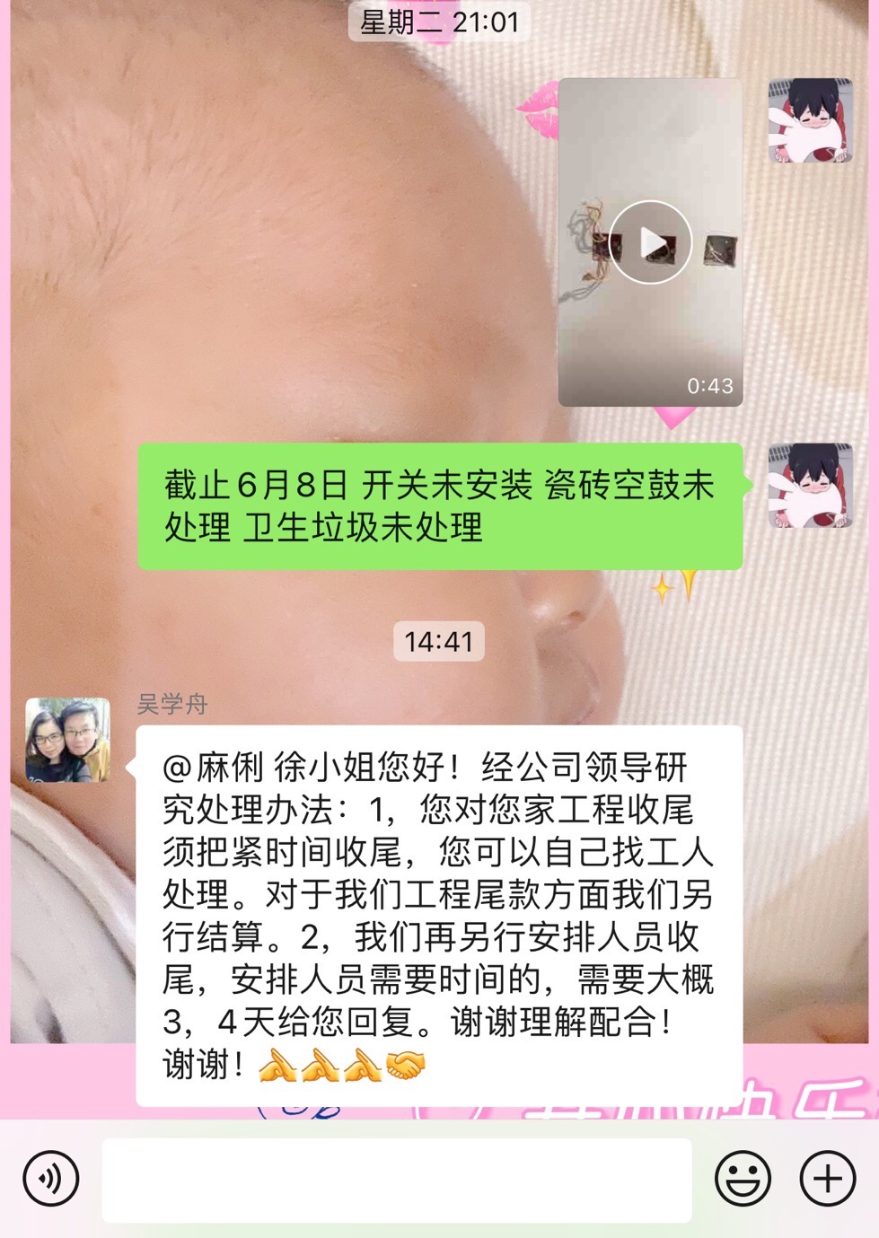 | 投訴類型 | 施工拖延 | 投訴人 | 麻** | 被投訴單位 | 上海先邁建筑裝潢工程有限公司 |