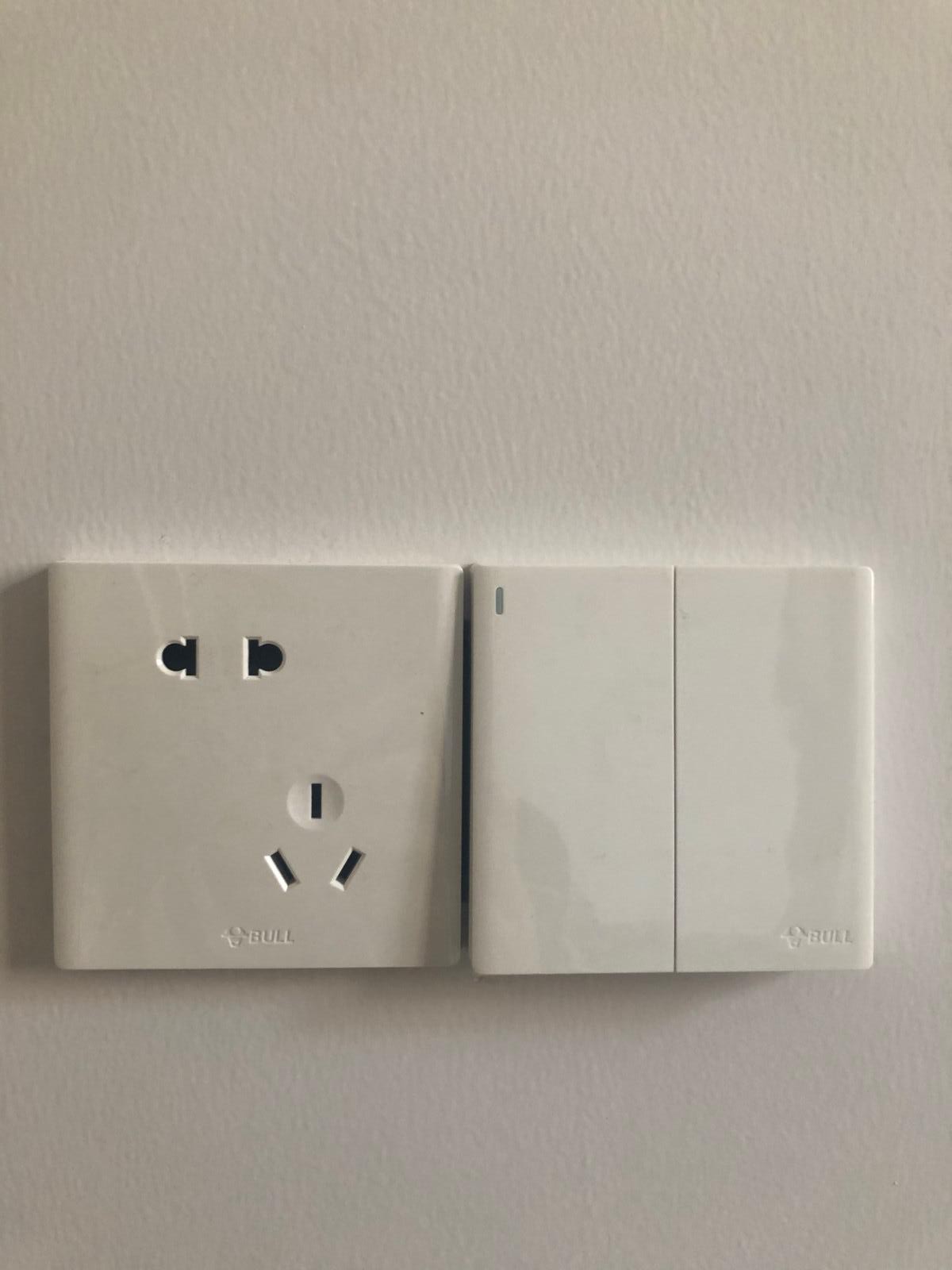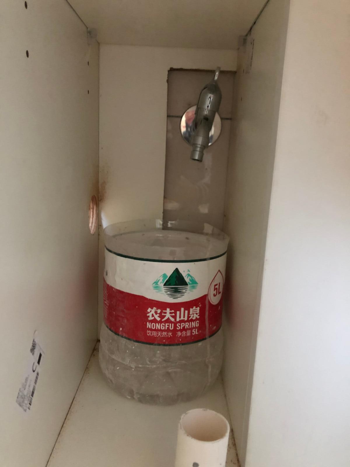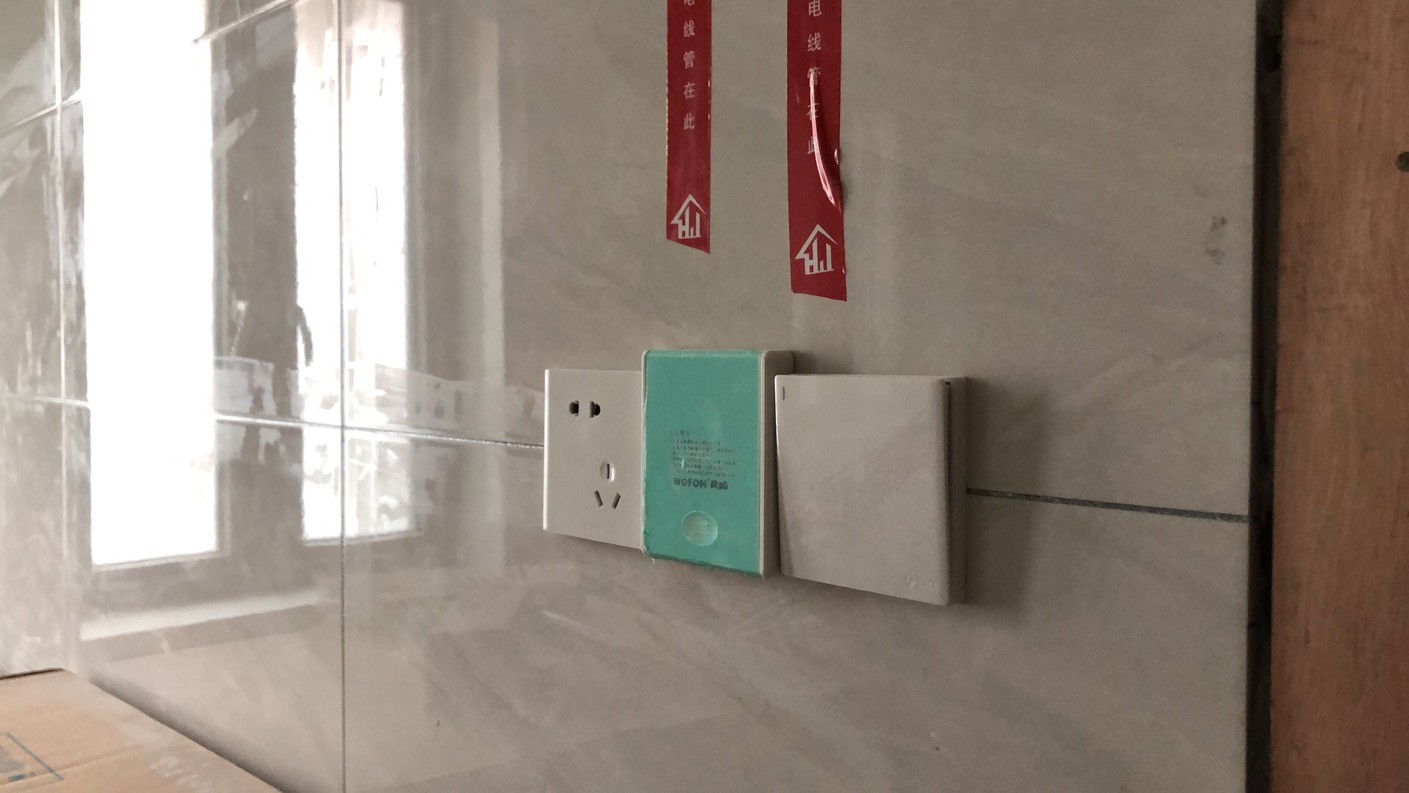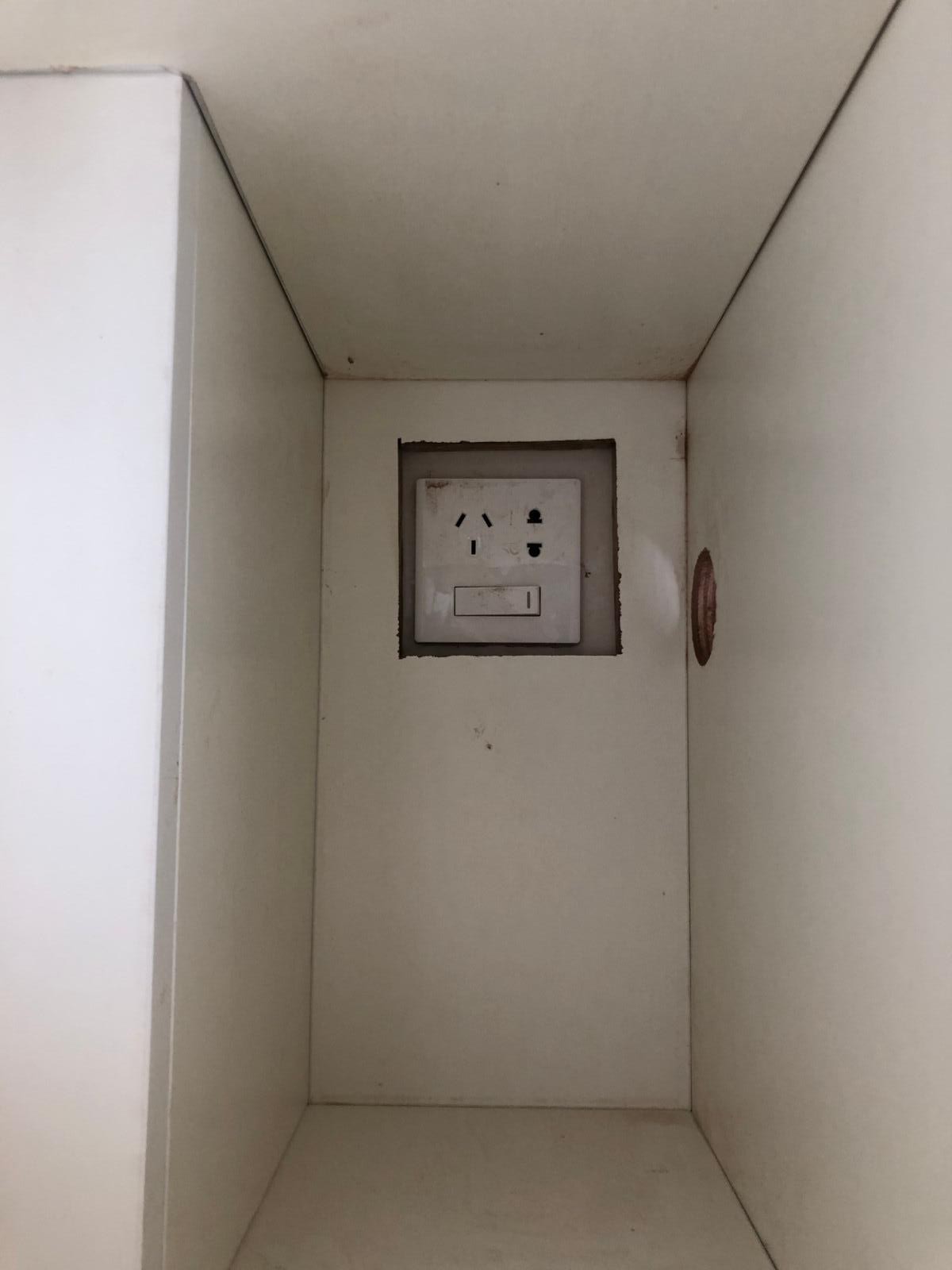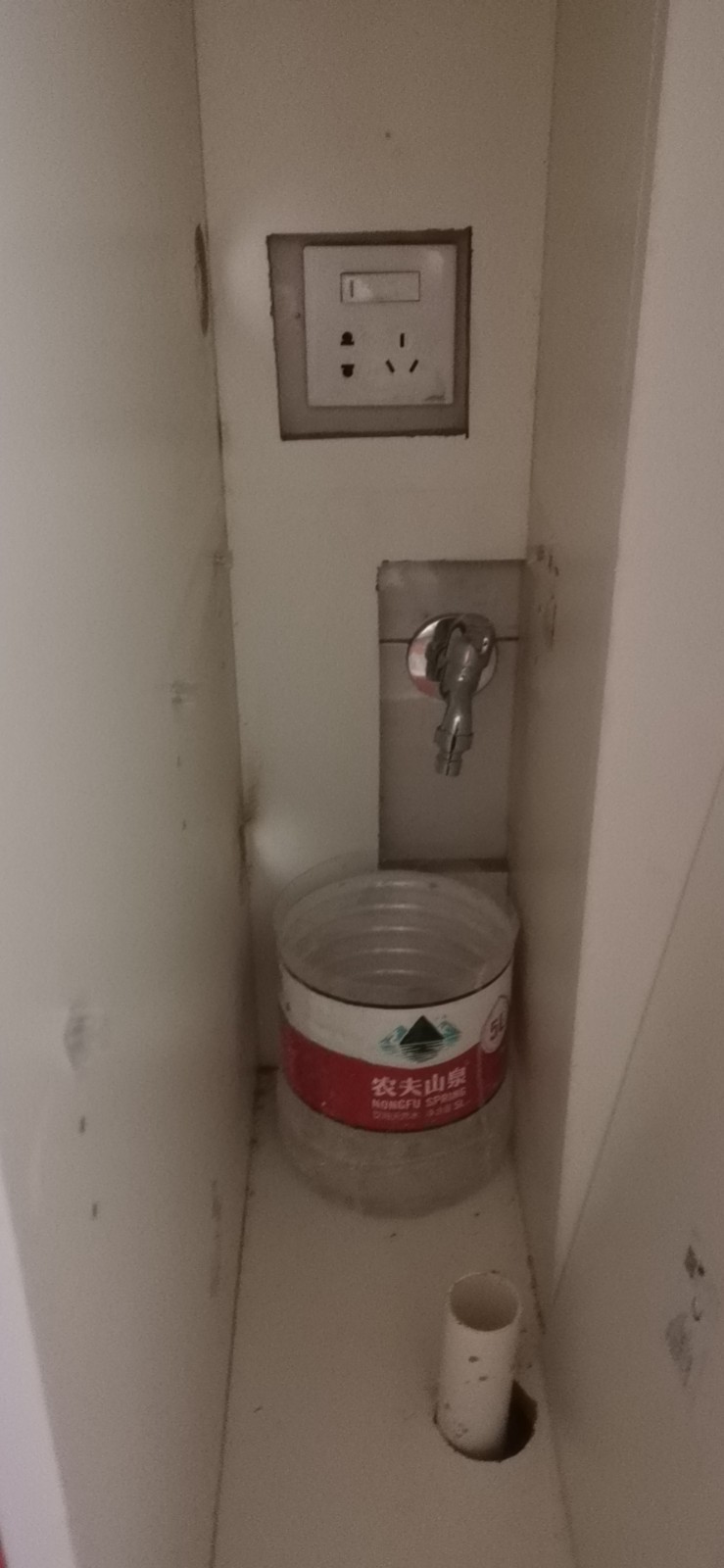 洗衣機(jī)水管處,上面是插座,下面是水龍頭