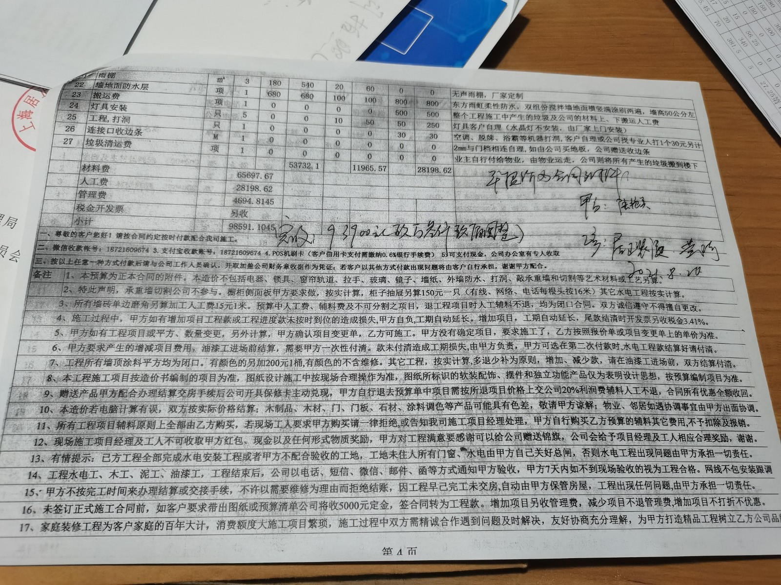 | 裝修面積 | 40m2 | 投訴人手機(jī) | 1378895**** | 被投訴人手機(jī) | 1872160**** |