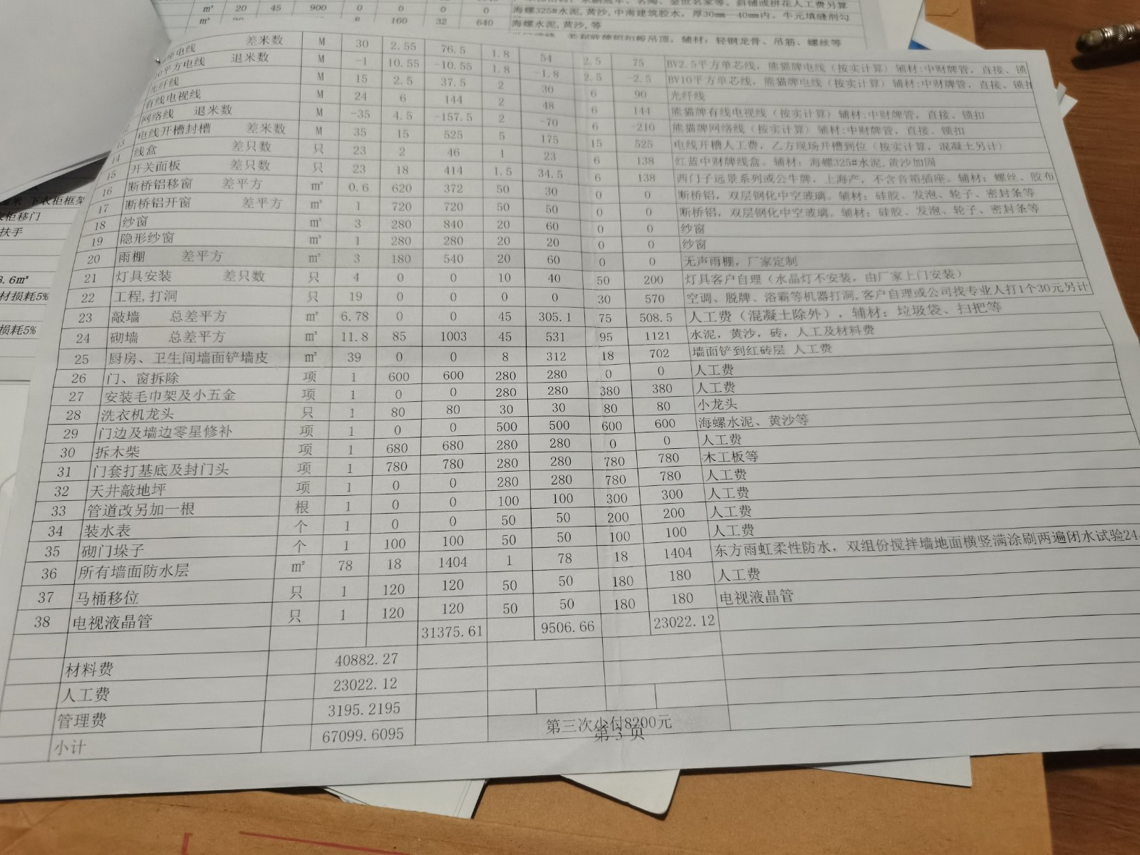 這是量房之后,根據(jù)同意的設(shè)計(jì)稿(也是最后實(shí)際施工圖)得出的預(yù)算清單