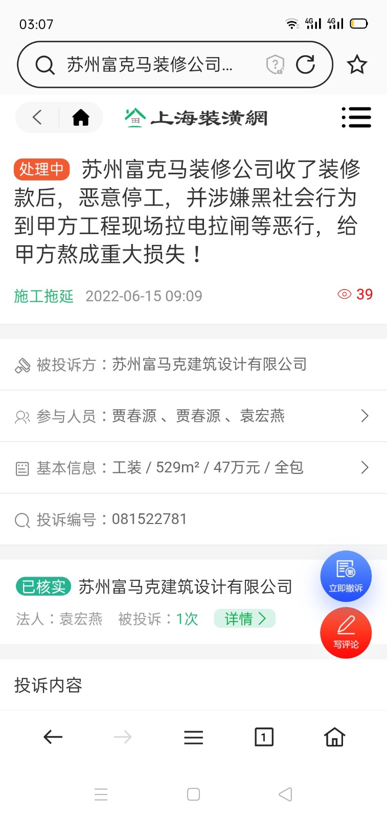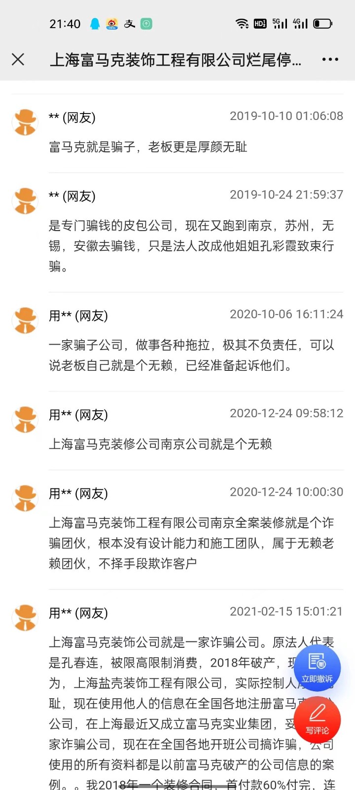 請大家一定謹(jǐn)慎小心,千萬不要被這個(gè)富馬克公司騙了!涉黑的無賴裝修公司,必定遭到法律的制裁!
