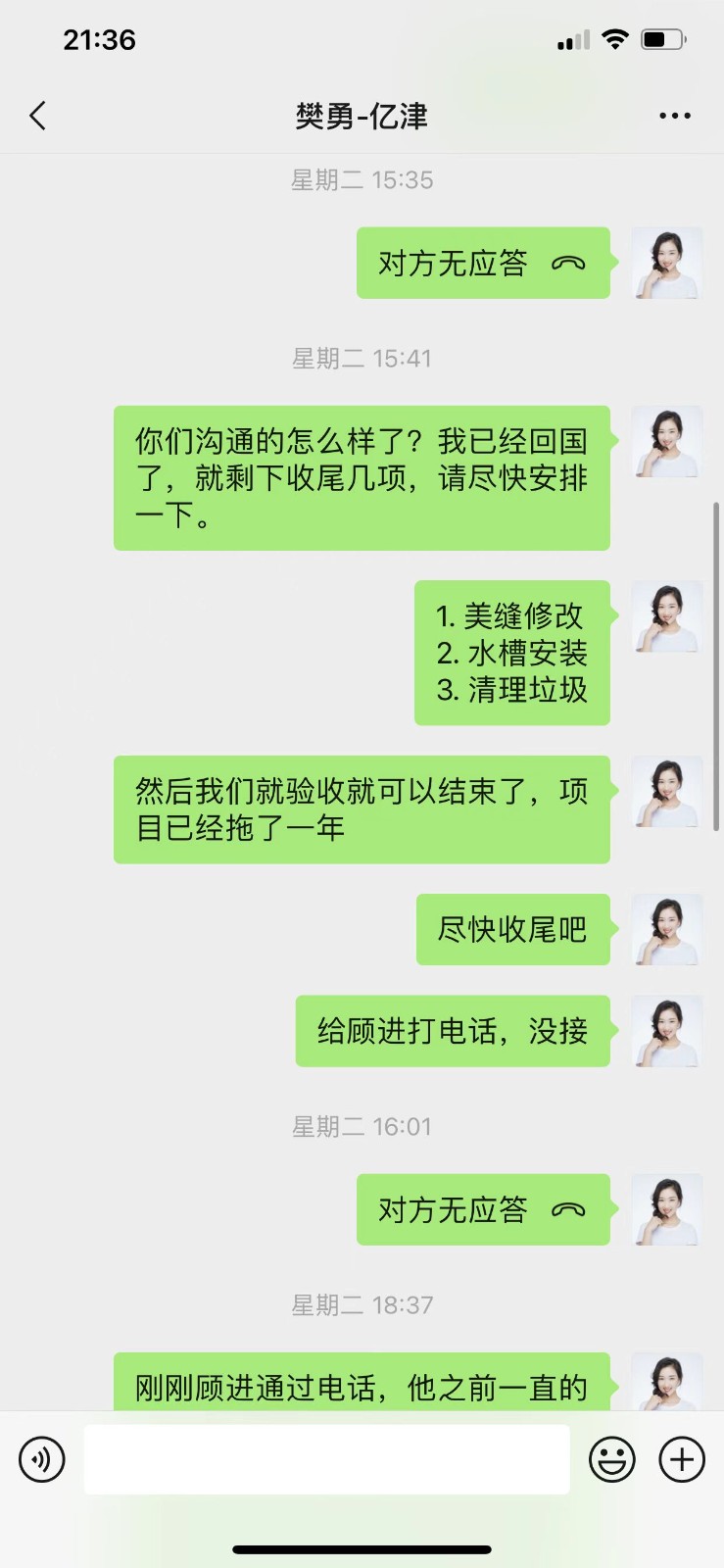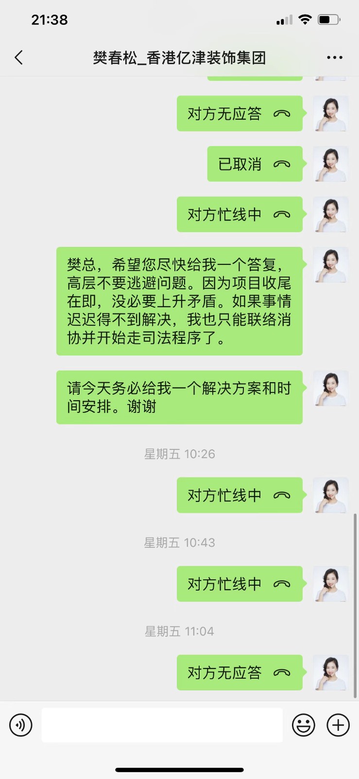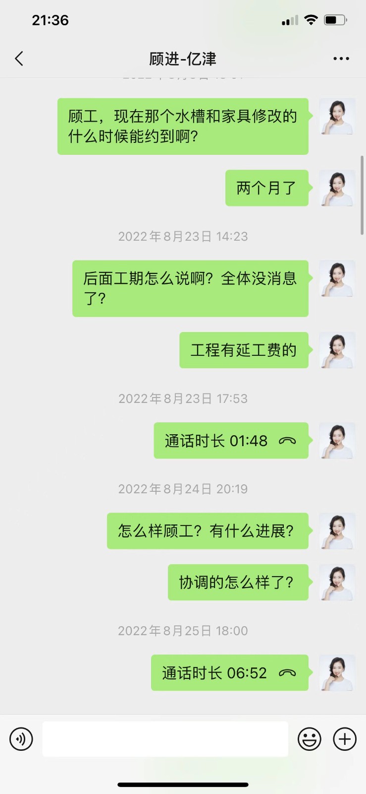 本人位于浦東新區(qū)蘭嵩路555弄D1101的房子(房產(chǎn)證面積173平米)于2021年7月開工,原計劃完工驗收時期為2021年11月底,然而至今依然未完工。施工過程中,億津裝飾公司不履行合同,亂收增項費用,在業(yè)主提出質(zhì)疑后威脅業(yè)主不付增項就不開工。目前項目已持續(xù)一年零兩個月之久,依然有多項未完工,聯(lián)系不上工程管理人員,公司實際控制人也在了解了情況后再也未接聽電話。目前多方了解到,億津裝飾拖欠工程款、供應商款項繁多,造成供應商與工人罷工,業(yè)主已付物料也被私吞。管理人員威脅業(yè)主:”你信不信我把你家都拆了!"