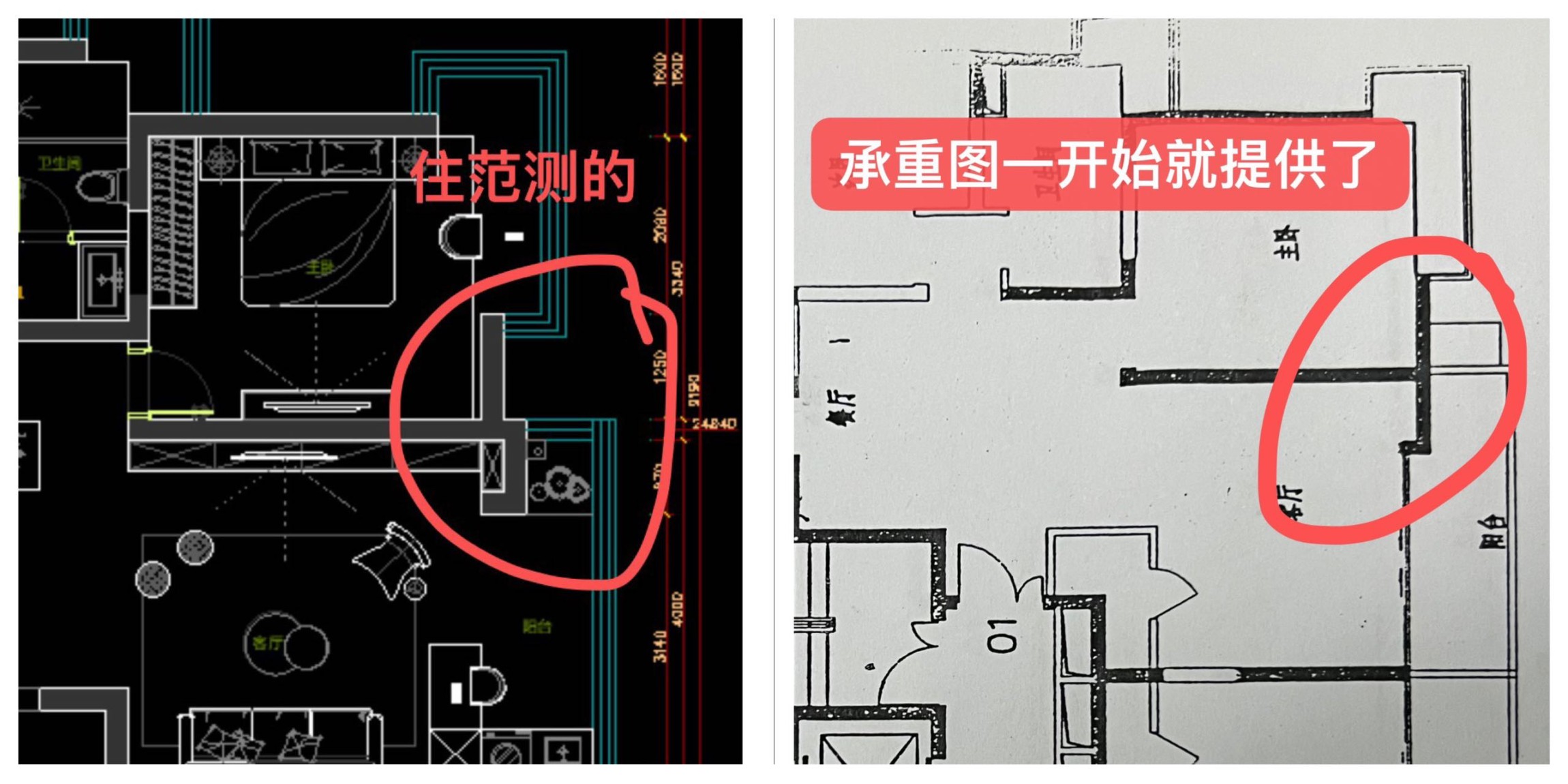 2. 設(shè)計(jì)團(tuán)隊(duì)專業(yè)性差,量房尺寸明顯錯(cuò)誤,誘導(dǎo)敲承重墻;