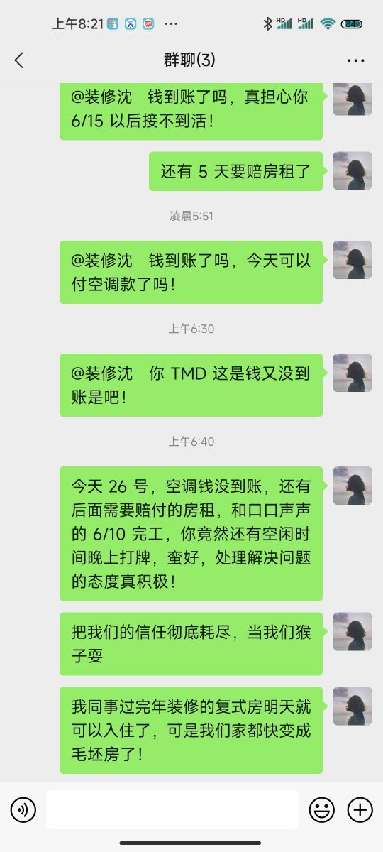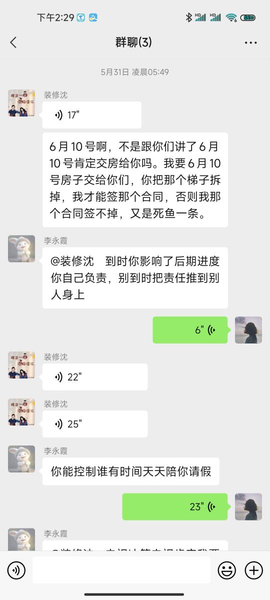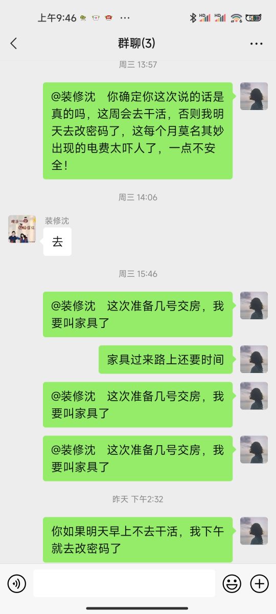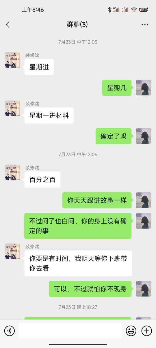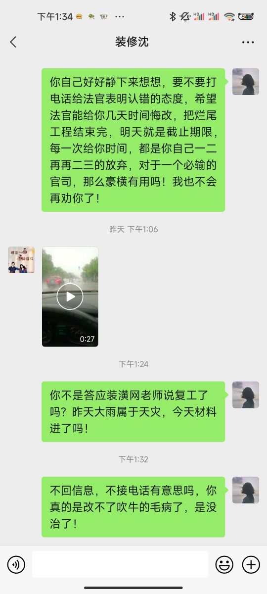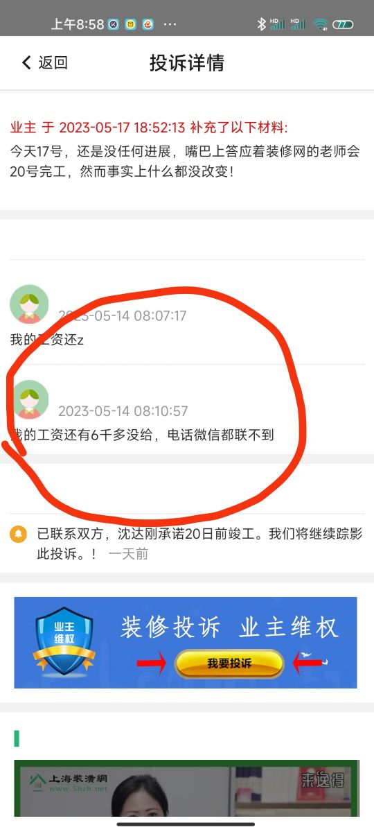 | 投訴類型 | 施工拖延 | 投訴人 | 楊** | 被投訴單位 | 沈達剛 |