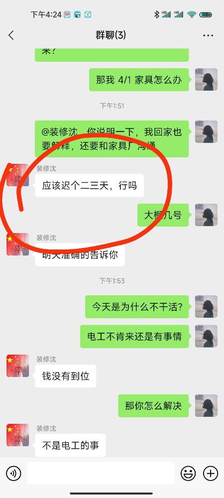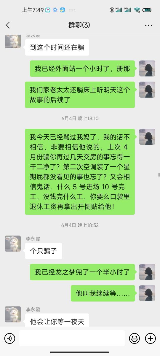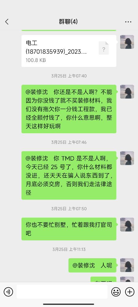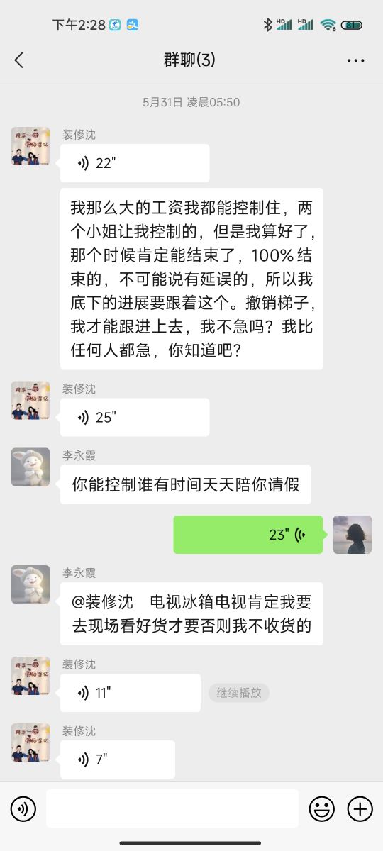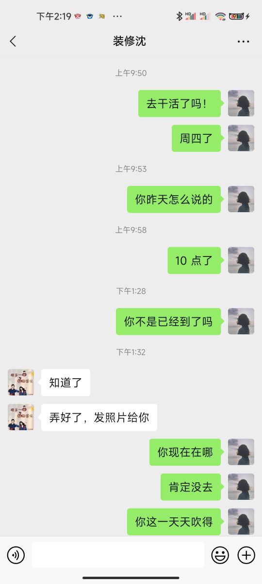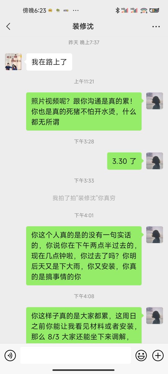| 投訴類型 | 施工拖延 | 投訴人 | 楊** | 被投訴單位 | 沈達剛 |