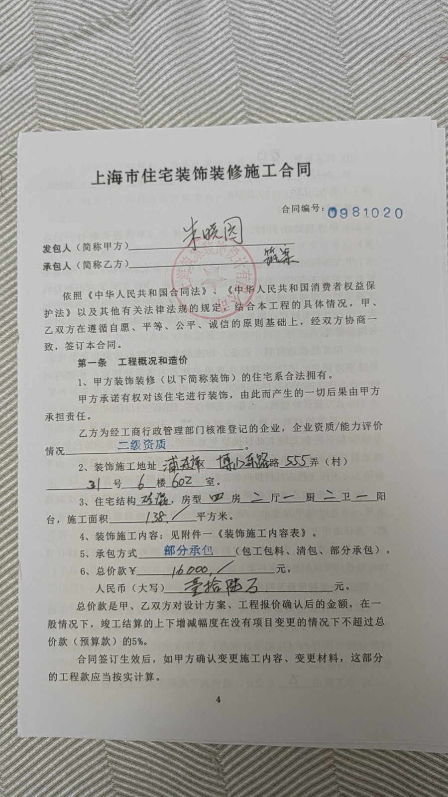 | 裝修造價(jià) | 16萬(wàn)元 | 裝修形式 | 半包 | 處理狀態(tài) | 處理中 |