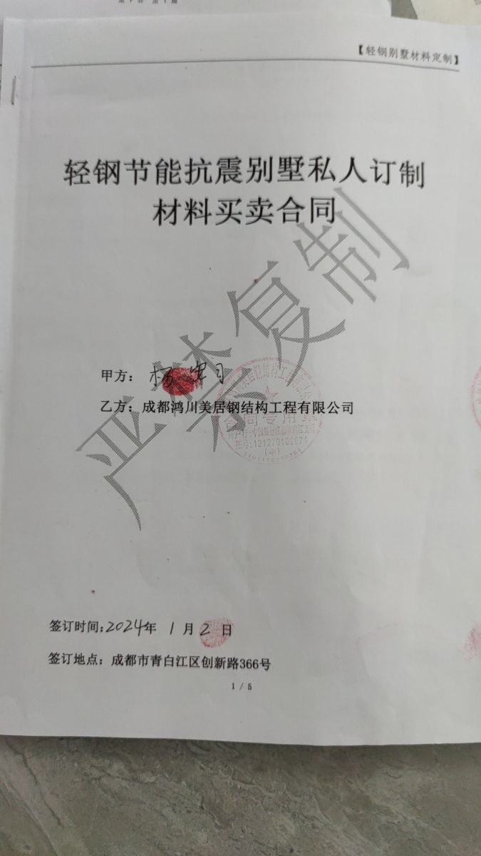 本人楊安習(xí)2023年12 月9號(hào)來(lái)到成都鴻川美居鋼結(jié)構(gòu)工程有限公司實(shí)地考察,他們業(yè)務(wù)員向經(jīng)理把我推給陳總接待參觀樣板間感覺(jué)還可以,工期不要30天左右就可以完工。然后陳總幫我計(jì)算房子面積按1420米建輕鋼別墅,除地基、主體材料運(yùn)費(fèi)由我來(lái)承擔(dān),其他主體以包括外墻漆內(nèi)裝修吊頂?shù)匕逅娦l(wèi)浴他們公司全包,還送13000萬(wàn)電器,達(dá)到樣板房要求,說(shuō)得很誠(chéng)懇。我看了一下合同他說(shuō)都是統(tǒng)一的,然后就沒(méi)有仔細(xì)看,以為這么大公司還是講誠(chéng)信的。陳給我們算了一下預(yù)計(jì)121.7平米。當(dāng)天就簽合同交付了20000定金?;丶疫^(guò)了幾天他們給我出效果圖我自己做好地基,過(guò)后姓陳的就催我們把錢(qián)付60%才能開(kāi)始生產(chǎn)材料,計(jì)算面積為121.7平米,一共172814萬(wàn)元,我應(yīng)付60%,,我轉(zhuǎn)了90000元,安排定制材料,主體鋼結(jié)構(gòu)貨到后又轉(zhuǎn)了28251元,人工費(fèi)車(chē)費(fèi)用都是我付了,然后約了幾天他們公司來(lái)了1個(gè)人,公司來(lái)的那個(gè)人吃住都是我付的責(zé),叫我們自己找3個(gè)小工的錢(qián)要我們自己給,到這個(gè)時(shí)候我們發(fā)現(xiàn)被騙了,于是我們找陳總,姓陳的又叫我們找,姓黎的說(shuō)給我們補(bǔ)幾千元,我們沒(méi)同意,姓黎的叫我們起訴姓陳的,開(kāi)始作妖了,狐貍尾巴露出來(lái)了,說(shuō)叫我們玩文字游戲,讓我看合同,。如今在中國(guó)還有這么猖狂的公司,天理何在。農(nóng)村建房子都是我們老百姓家的血汗錢(qián),希望相關(guān)部門(mén)能夠重視調(diào)查這樣的詐騙公司,嚴(yán)查此公司。曝光媒體,