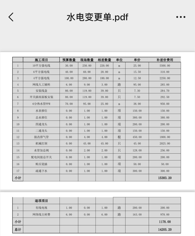 泥工刷墻增項(xiàng)6千,水電增項(xiàng)1.5萬