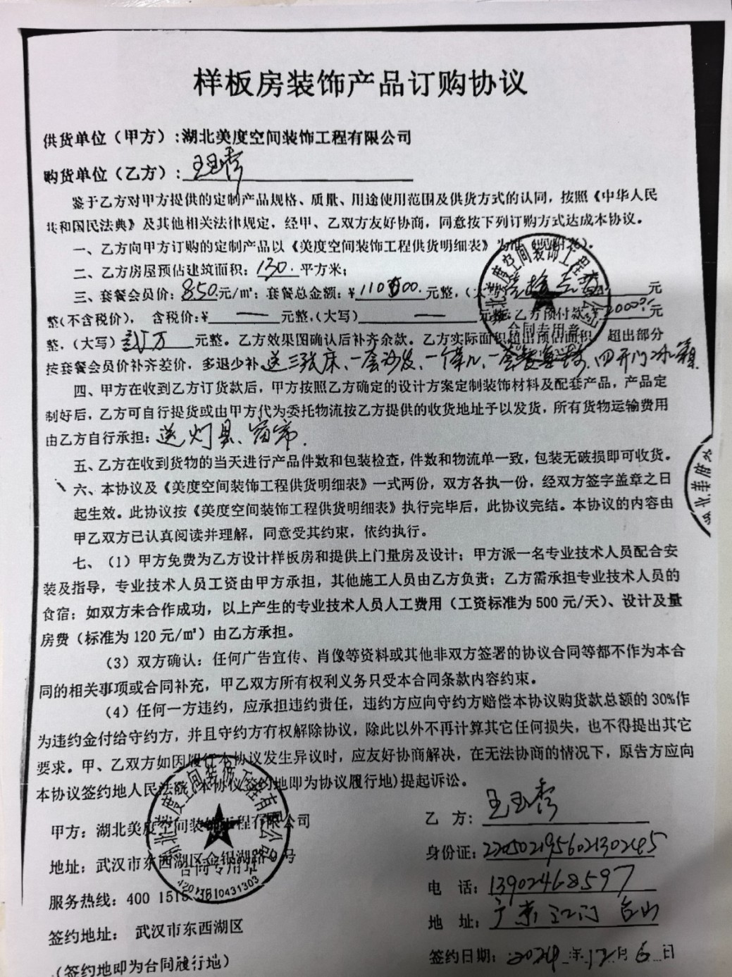 | 投訴類型 | 合同糾紛 | 投訴人 | 王** | 被投訴單位 | 湖北美度空間裝飾工程有限公司 |