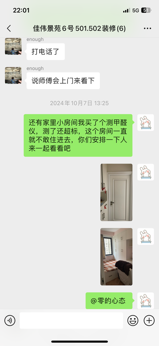 投訴裝修質(zhì)量問題:滬尚茗居裝修提供的定制柜的材料味道很大,入住之后對我和我的家人的身體也造成了傷害。我自己購買了甲醛檢測儀測出來超標,所以我去找公司去解決這個問題,但是公司對這個問題處理不是很積極,沒得到解決。家里還有小朋友,這問題沒解決,我們現(xiàn)在很擔心這個事情。滬尚茗居派第三方過來檢測前他們還派人除過一次甲醛,但從檢測的數(shù)值上看材料是有問題的,(因為采樣當天應(yīng)該是采樣15分鐘,但是采樣員粗心發(fā)現(xiàn)時間設(shè)置少了,又開門進去加5分鐘,并且采樣時門開開關(guān)關(guān),拿個牌子這拍張照,那拍張照)檢測流程不符合操作規(guī)范,就這樣測出來的數(shù)值還是接近規(guī)定的上限。實際數(shù)值遠遠大于這個值。他們就說報告合格來搪塞我們。但我們自己測的是超標的。