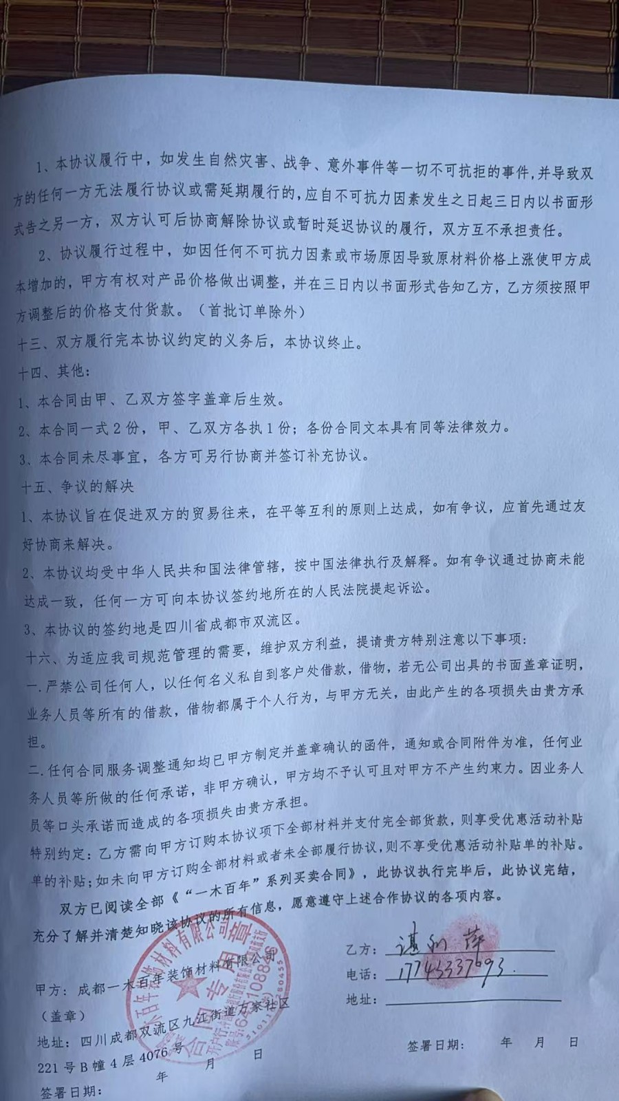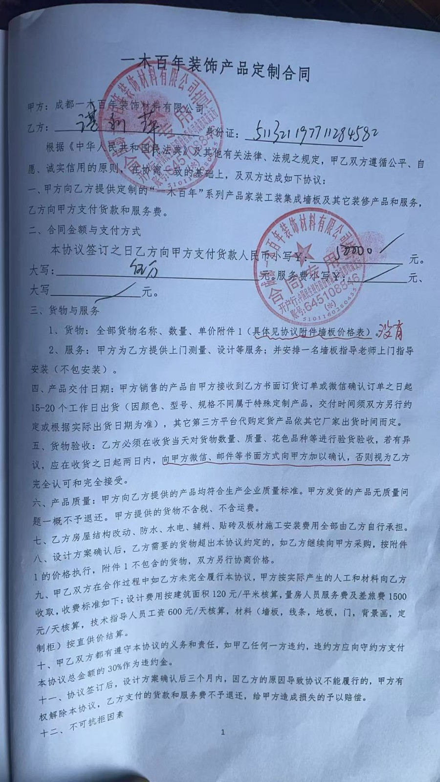 | 投訴類型 | 合同糾紛 | 投訴人 | 諶** | 被投訴單位 | 成都一木百年裝飾材料有限公司 |