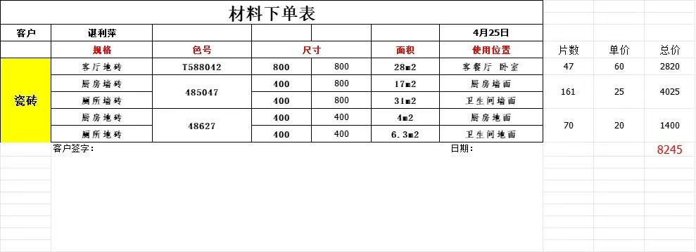 當(dāng)方面統(tǒng)計(jì)瓷磚價(jià)格,實(shí)際只收到130張80*80