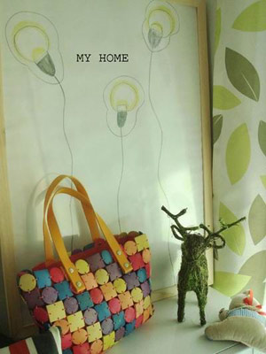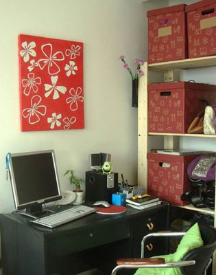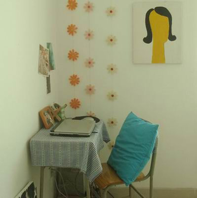 小小書桌,增添了一個靠墊,墻上掛了一些小裝飾。
