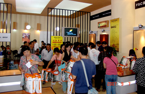 9月7日一大早,當(dāng)展館的大門開啟時,一股欲動的人群便直接涌向惠爾展臺,剎時間,惠爾地板展廳便已人流如潮,全場歡沸了?;轄栒古_前一下子便排起了長龍隊(duì)伍,后來從他們排隊(duì)當(dāng)中的消費(fèi)者了解到,惠爾的花色他們早在一個星期前就已經(jīng)看好了,現(xiàn)在來排隊(duì)就是為了搶個好名次,爭個好折扣,惠爾地板超低的折扣讓消費(fèi)者是最心動的。短短的四天展會,卻也有很多感人的故事,在地板博覽會的第二天有一位安徽蕪湖的消費(fèi)者特地趕到南京,為了能拿到好的折扣甚至不惜住賓館,等待第二天早點(diǎn)來排隊(duì);還有一位南京本地的老太太,為了能夠給兒子結(jié)婚用的新房買上好地板,早上5點(diǎn)就來到展館門口排隊(duì)了,但是事違人愿,由于開門是人涌如潮,等到老太太走到惠爾展臺前排隊(duì)的隊(duì)伍已經(jīng)老長了,只得在一旁嘆氣,惠爾地板這次展會負(fù)責(zé)人周總知道這件事情以后,對這位老太太的訂單進(jìn)行了特批,讓每一位光顧惠爾的消費(fèi)者都滿意,讓每一位顧客都能買到稱心如意的地板,是惠爾工作人員在展會上最開心的事情。展會上惠爾的工作人員也很鼓勵初次接觸惠爾的顧客到其他展臺轉(zhuǎn)轉(zhuǎn),找到合適的才是最好的。但是很多消費(fèi)者轉(zhuǎn)了一圈以后還是回到了惠爾的展臺里,他們認(rèn)為惠爾地板是南京的廠家公司,又是業(yè)內(nèi)的知名品牌,買了放心。