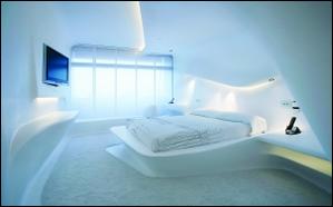 純白臥室 這是由著名女建筑師ZAHA設計的室內項目,盡管以白色作為主色調,但卻絲毫感覺不到簡陋。設計師巧妙地用各種曲線來突出白色的質感,從某個角度上說,這是徹底的“裸”。