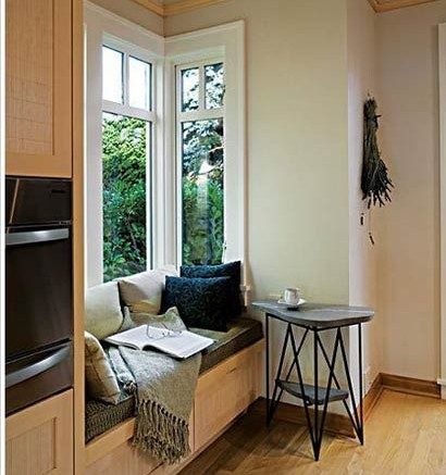 獨家點評:用柔軟的墊背營造出舒適、溫暖的感覺,旁邊加上的三角形小桌子,立馬在小小的空間內(nèi)獨立出一個休閑區(qū),可謂匠心獨運。