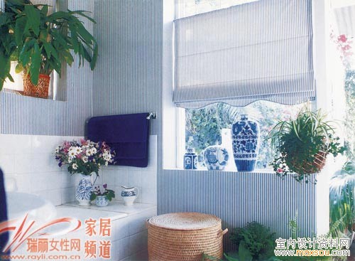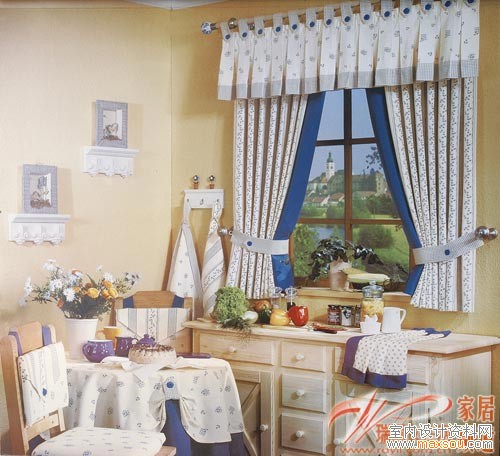 廚房、衛(wèi)生間的窗戶大都較小,因此在簾頭和懸掛方式上做些細節(jié)文章,并與整體裝飾諧調一致,小窗也將精彩。