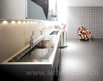 水盆:水盆是使用頻率很高的廚房用品,采用臺下盆設(shè)計(jì)使盆的邊緣低于臺面,防止了水的溢出,幫助臺面清潔,同時解決了邊縫難以清理的問題。