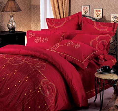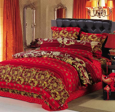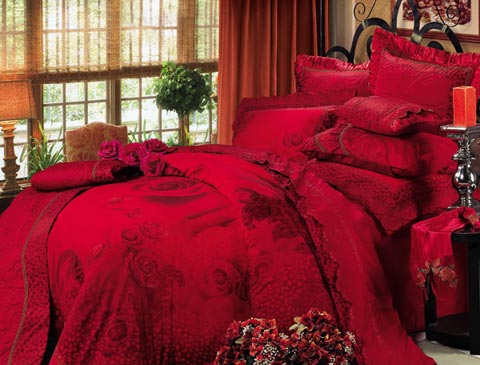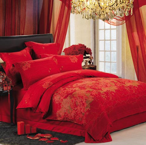 概要: 一般來說,中國人結(jié)婚一般都偏愛紅色,床上用品自然也不例外,選用紅色就是想圖個吉利熱鬧、讓大喜的日子能更添幾分喜慶?! ≡诨鸺t的玫瑰園中,幸福的新人在舉行盛大的婚禮,此時,比愛情還要珍貴的就是幸福的時光。給人感覺就是一床幸福的顏色,所帶來的,也是那幸福的時光。