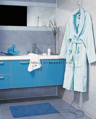 勿忘的點(diǎn)睛之筆——方便實(shí)用的裝飾品:衛(wèi)浴間的裝飾材料以藍(lán)色為主,色調(diào)整體偏冷。在這樣一個(gè)冰冷季節(jié),柔軟的棉制面料會(huì)提供溫軟舒適的感覺。在冷色基調(diào)中營造出暖意融融的洗浴環(huán)境。