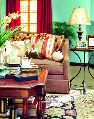 沙發(fā)、茶幾、靠墊、地毯,是客廳改裝的4種實際型改造工具。從材質(zhì)和色彩上要牢牢鎖定冬季專屬的尊貴成熟的感覺,打造出深植人心的尖端客廳時尚。
