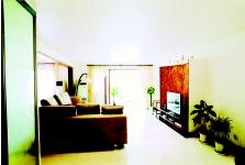 概要: 整個(gè)空間沒(méi)有過(guò)多的設(shè)計(jì),設(shè)計(jì)師運(yùn)用配飾來(lái)營(yíng)造客廳溫馨、現(xiàn)代的氛圍。采用了明式筒燈作為主要人造光源,構(gòu)與式光帶與景象變化,促成一種立體交錯(cuò)的效果,增加了整體空間的量感,突出了現(xiàn)代變化的另類氣息,強(qiáng)調(diào)樓上樓下的連續(xù)性,創(chuàng)造出一種富于色彩變化的燈光效果。本案為大戶型的客廳,設(shè)計(jì)師將客廳與茶室的隔墻打開(kāi),陽(yáng)臺(tái)、客廳與茶室渾然一體。