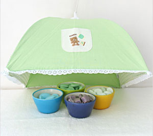 給餐桌上的料理蓋上,可防塵、抗菌、防臭,又給人溫馨的感覺
