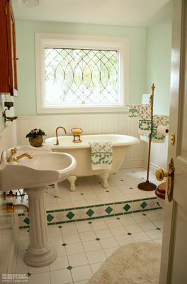 三要素定色屬于暖色系的紅、黃、橙,令人溫暖、喜悅,同時使空間感覺變小,而藍(lán)、綠等冷色系的顏色令人感覺寒冷、冷靜,使空間感覺較寬敞;另外,彩度及明度較高的色彩可塑造空間的寬敞,反之則使空間有穩(wěn)重感。除了色彩本身,照明效果就象色彩的“魔術(shù)師”,相同的顏色常因不同的光線亮度,在視覺上產(chǎn)生差異。因此,為衛(wèi)生間選擇色調(diào)前,應(yīng)綜合考慮以上三要素。