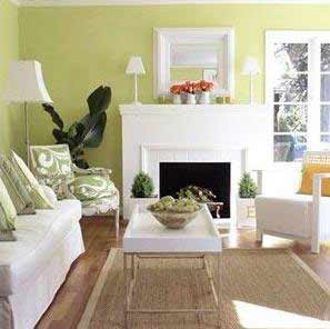 一副硬木地板、一個舒適的壁爐,再加上綠白相間的經(jīng)典搭配,這就是一個標準的時尚家庭裝修方案。當然,你也可以靈活地放一些自己喜歡的時尚元素。一些干凈簡潔、線條清晰的物品都可以放置進來,再加上一些點綴讓你的客廳變得更流行吧。