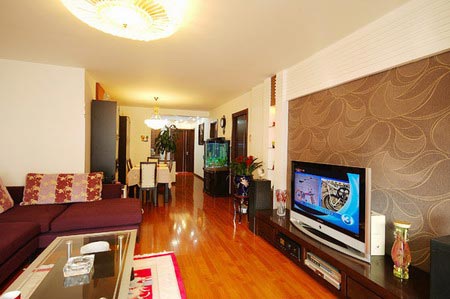 電視墻采用壁紙搭配胡桃木及石膏板的造型,白色石膏板配以深色胡桃木顯得節(jié)奏明快,爽朗雅氣,體現(xiàn)了業(yè)主直爽樸實(shí)的性格;又有大紋理壁紙的裝飾,更顯家的溫馨與特別。整個(gè)設(shè)計(jì)以直線條為主, 相互穿插結(jié)合,豐富而不凌亂,壁紙的弧形紋理又平添幾分活潑。
