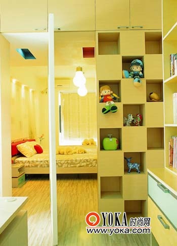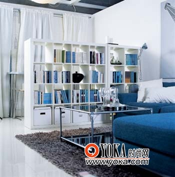 可利用書柜作為隔斷,隔出個別的空間,而不是用生硬的隔墻來劃分空間,這樣能適應(yīng)小戶型居住功能。其次,盡量使用透光的材質(zhì)做隔斷,這也是小面積住宅的設(shè)計要點。因為透光的隔斷不但可以透光,讓室內(nèi)更明亮,而且可以讓視覺有延展性,使室內(nèi)感覺更寬敞。