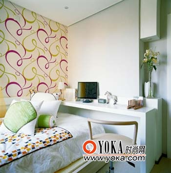 小房間的設(shè)計要以在滿足生活需要的基礎(chǔ)上合理劃分區(qū)域,盡量在有限空間里安排出更多的使用空間。面積小,但功能絕不可以少,戶型的先天不足,也許會成為設(shè)計的創(chuàng)意點。小小的臥室因為長寬比例失調(diào),無法配置床頭柜,而設(shè)計了一張床尾桌,不僅可以擺放更多的用品,而且還能臨時充當(dāng)工作臺,不過為了避免磕碰頭,它更適合安放在床尾。