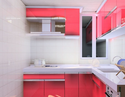 烤漆板基材為密度板,表面經過六次噴烤進口漆(三底、二面、一光)高溫烤制而成。目前用于櫥柜的“烤漆”僅說明了一種工藝,即噴漆后經過進烘房加溫干燥的油漆處理基材門板。烤漆板的特點是色澤鮮艷易于造型,具有很強的視覺沖擊力,非常美觀時尚且防水性能極佳,抗污能力強,易清理。缺點是工藝水平要求高,廢品率高,所以價格居高不下;使用時也要精心呵護,怕磕碰和劃痕,一旦出現損壞就很難修補,要整體更換;油煙較多的廚房中易出現色差。