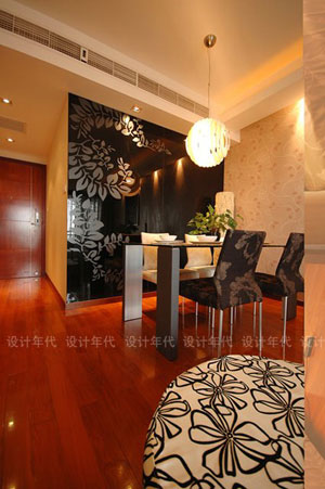 在小空間里使用較多的黑色是需要勇氣的,因為黑色容易把空間壓得透不過氣,不過凡事沒有定規(guī),關(guān)鍵看怎么用?;ǖ脑?,恰能在黑色世界里起到畫龍點(diǎn)晴的作用。