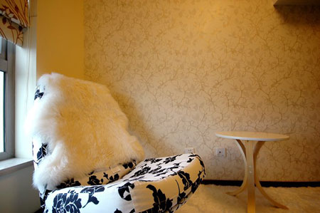 冬日里懶洋洋地在這純白的長毛地毯上或坐或躺,十分愜意。而壁紙、椅子、窗簾上的暗花讓人心情輕松,這個溫馨的角落,就像波希米亞女郎投射的一個溫柔慵懶的眼神。